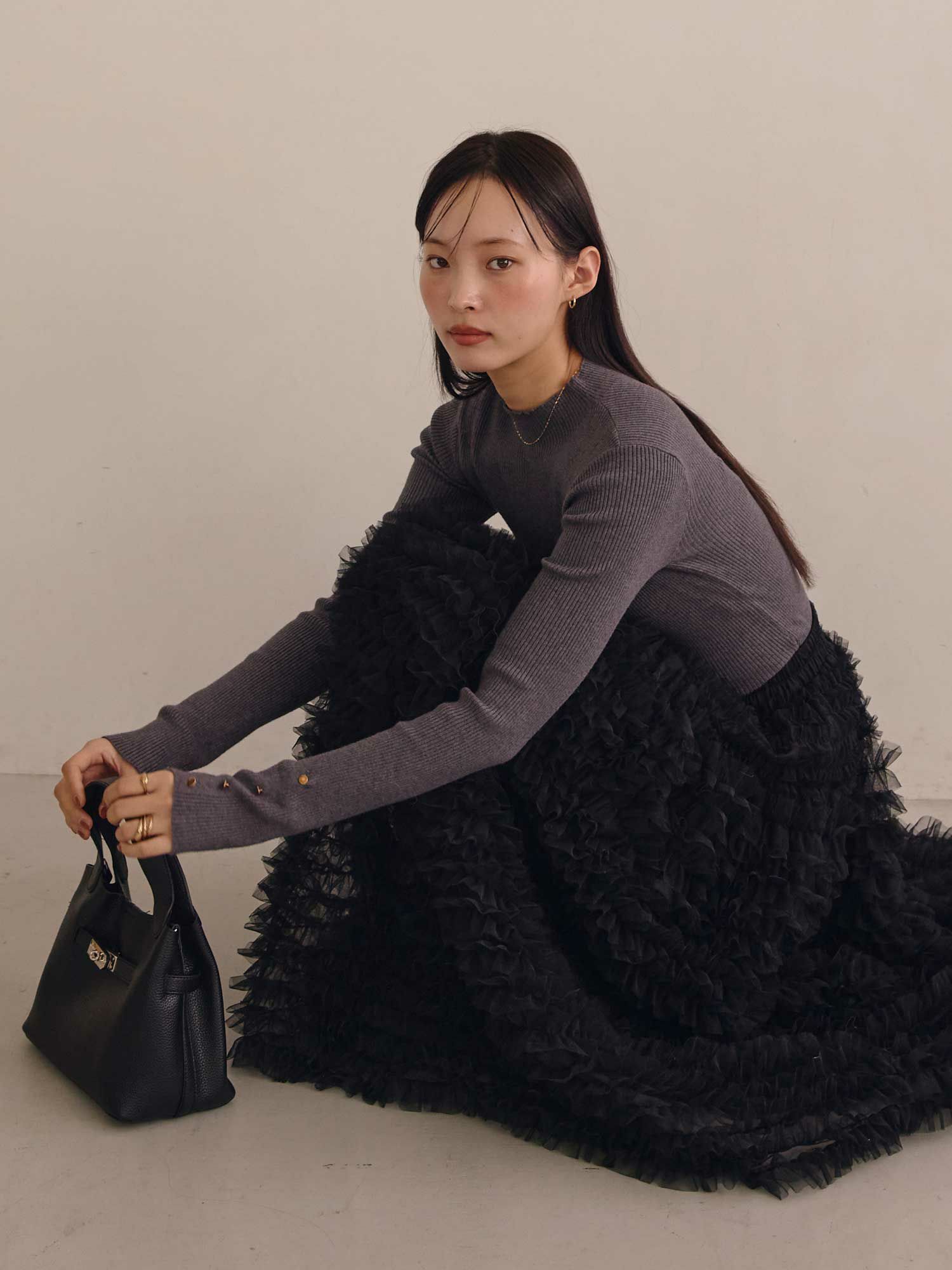 サテンバルーンロングスカート