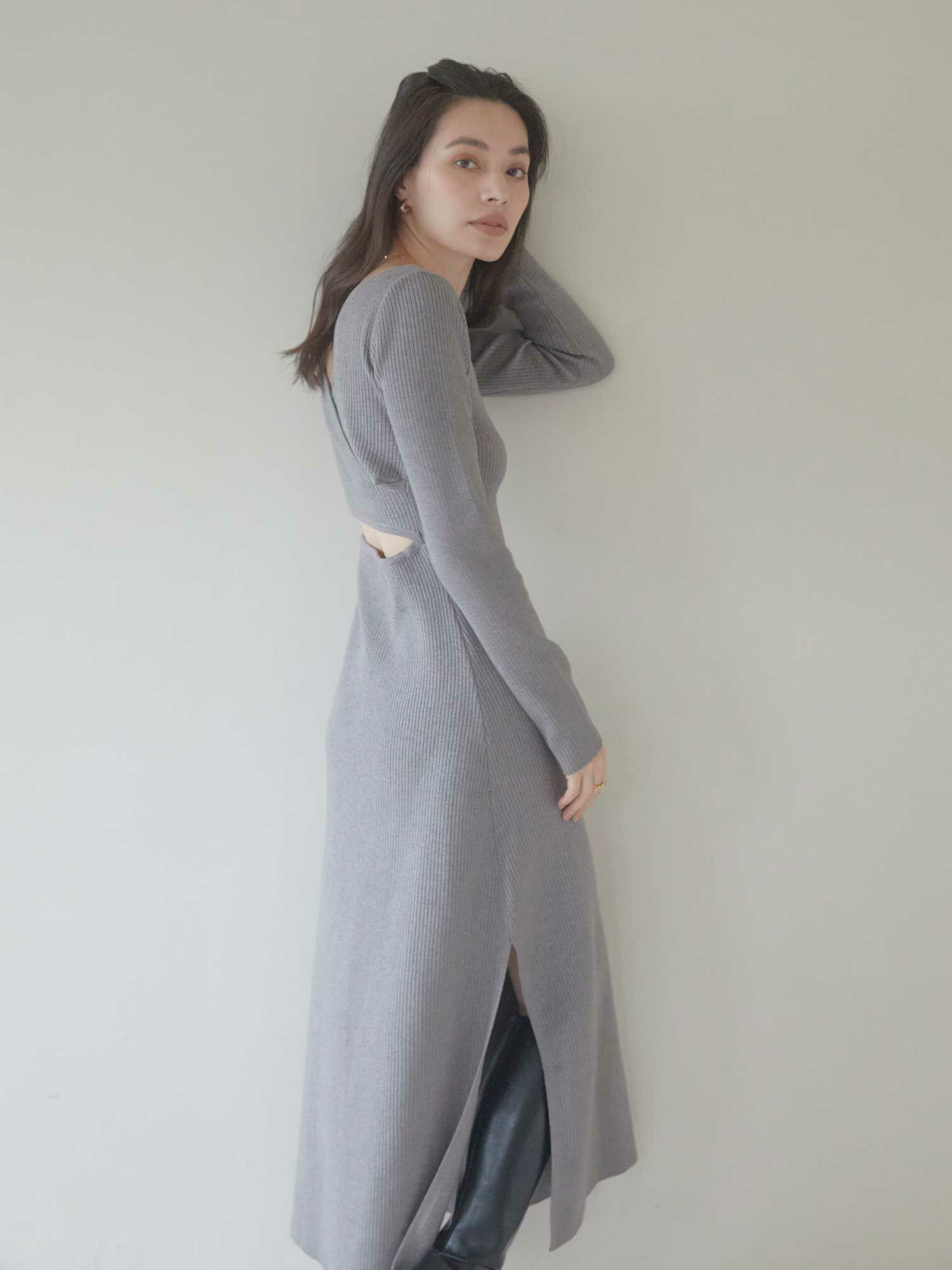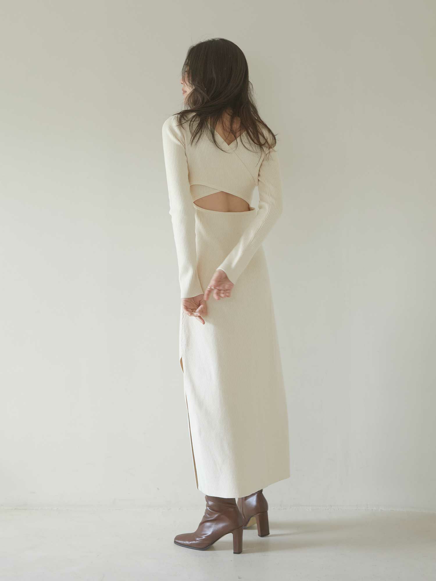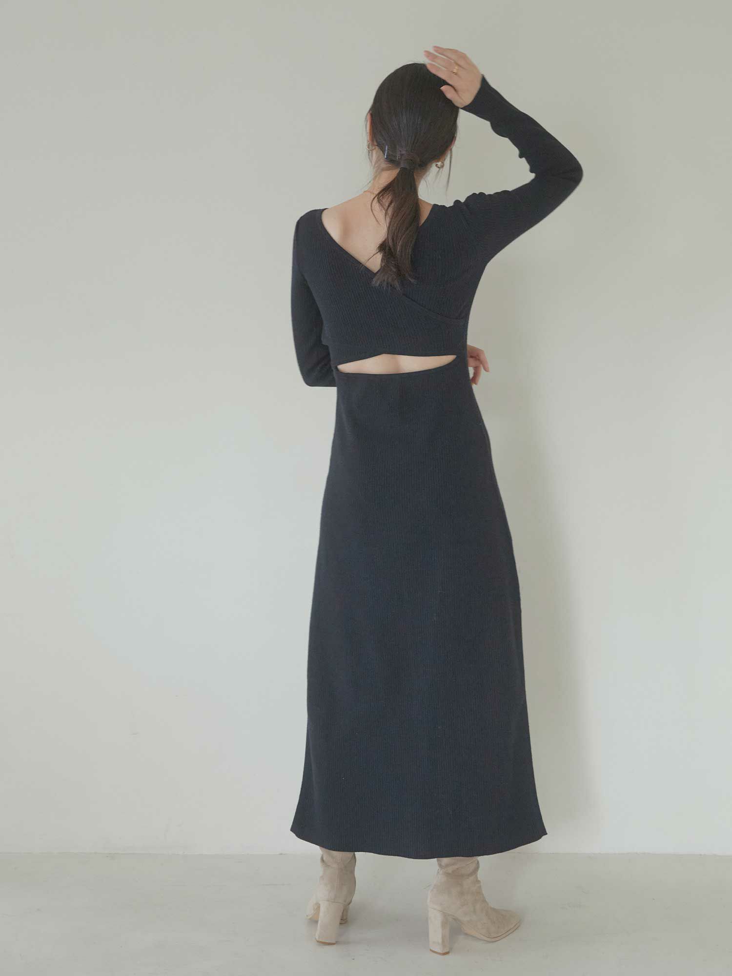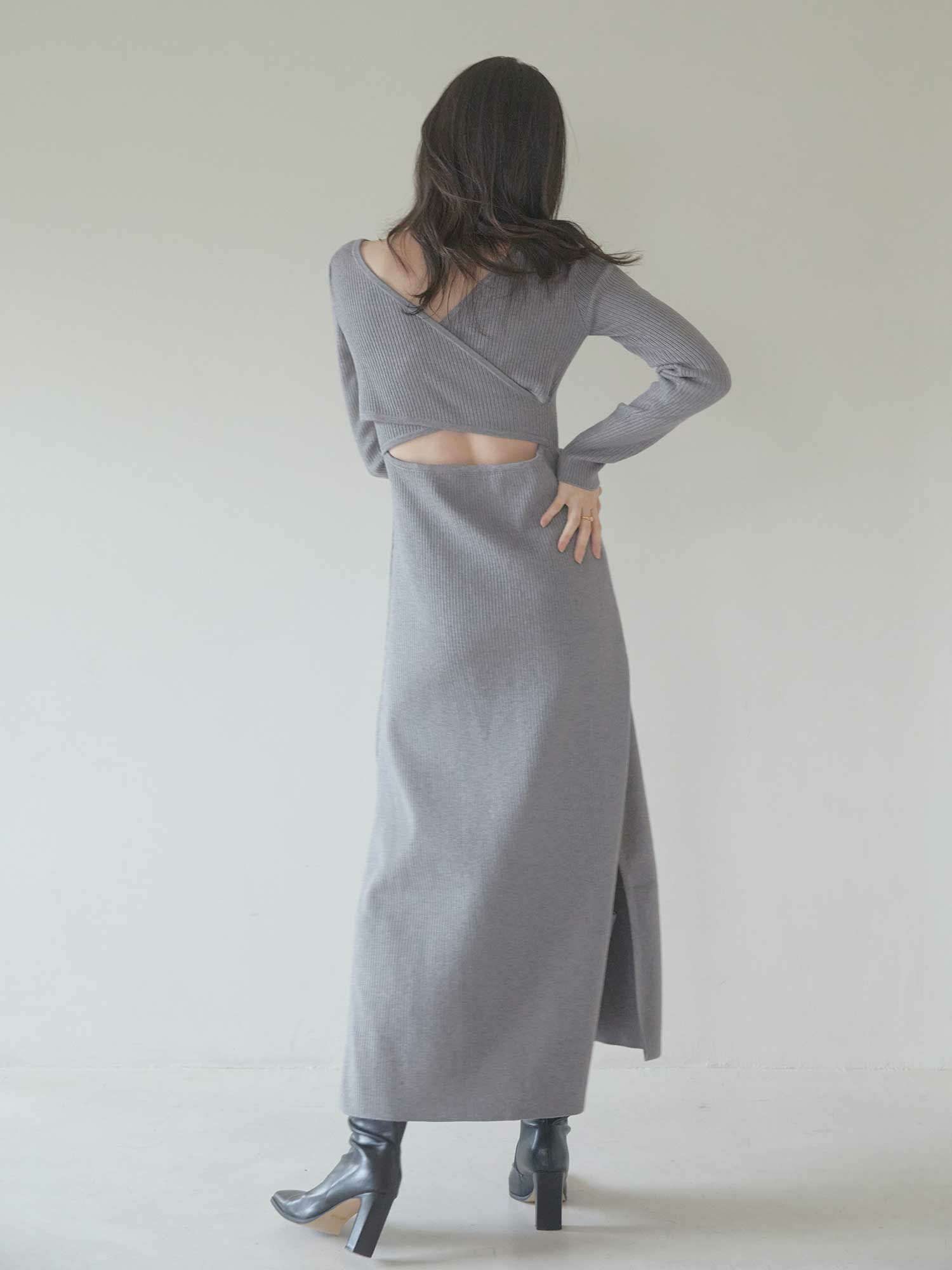 Back open mix knit ワンピース