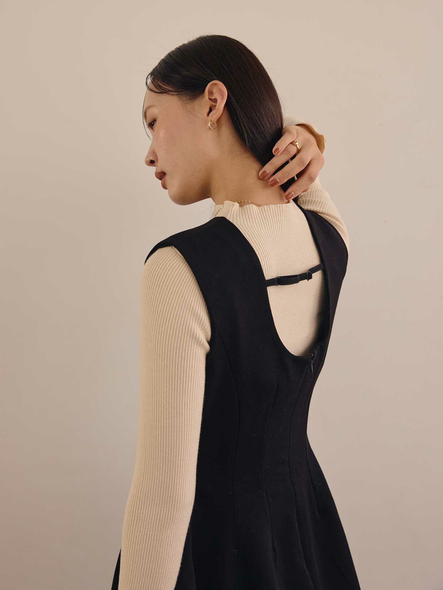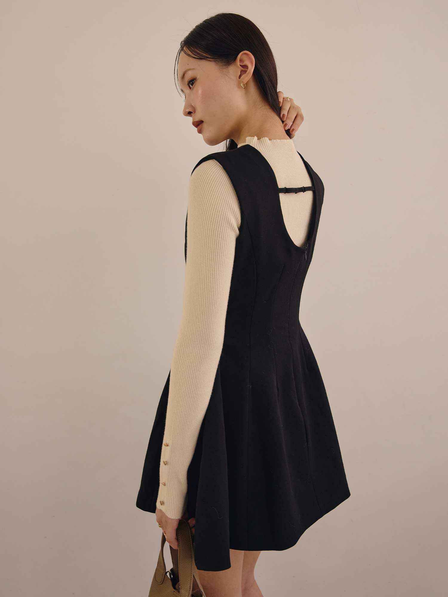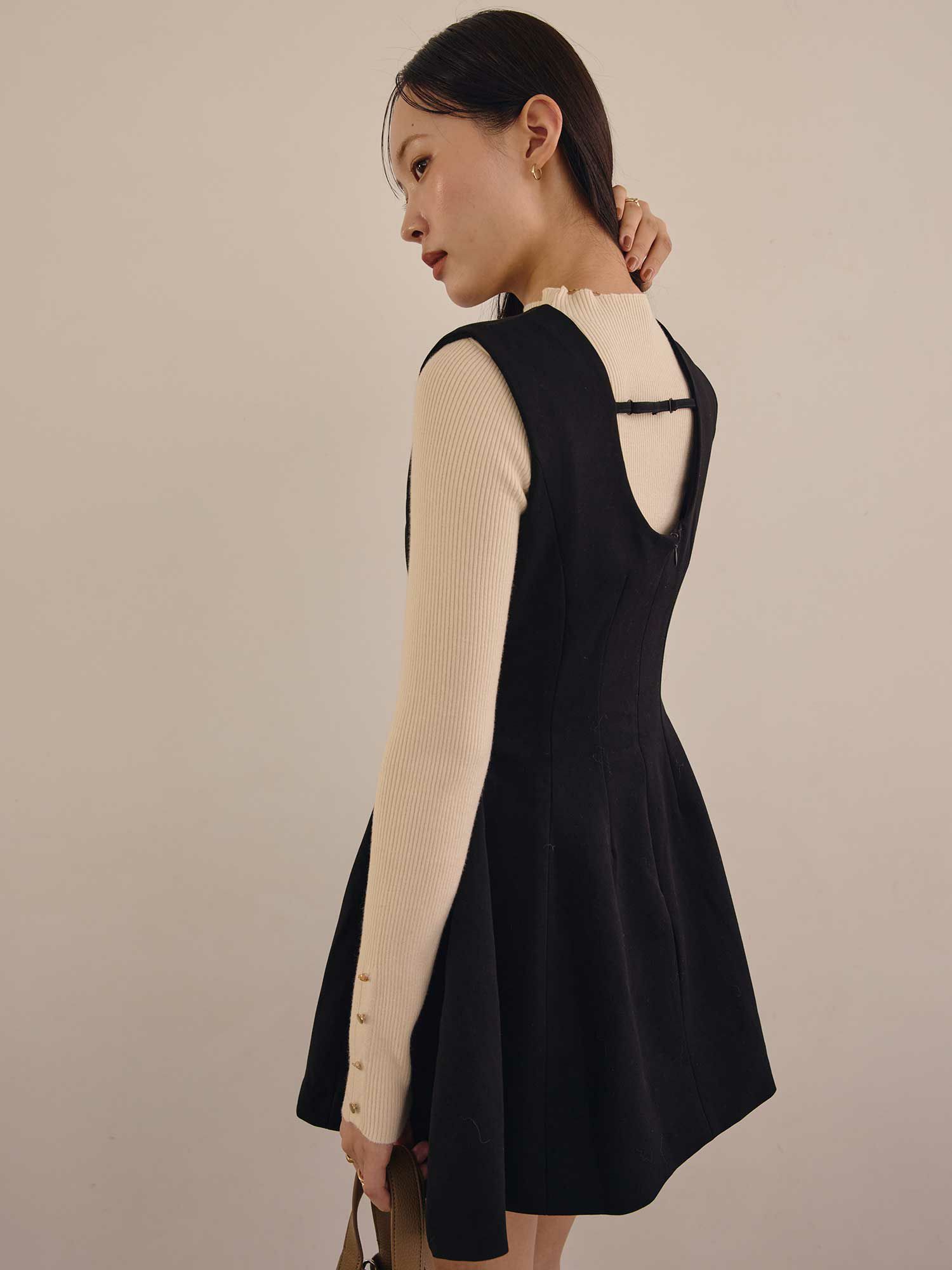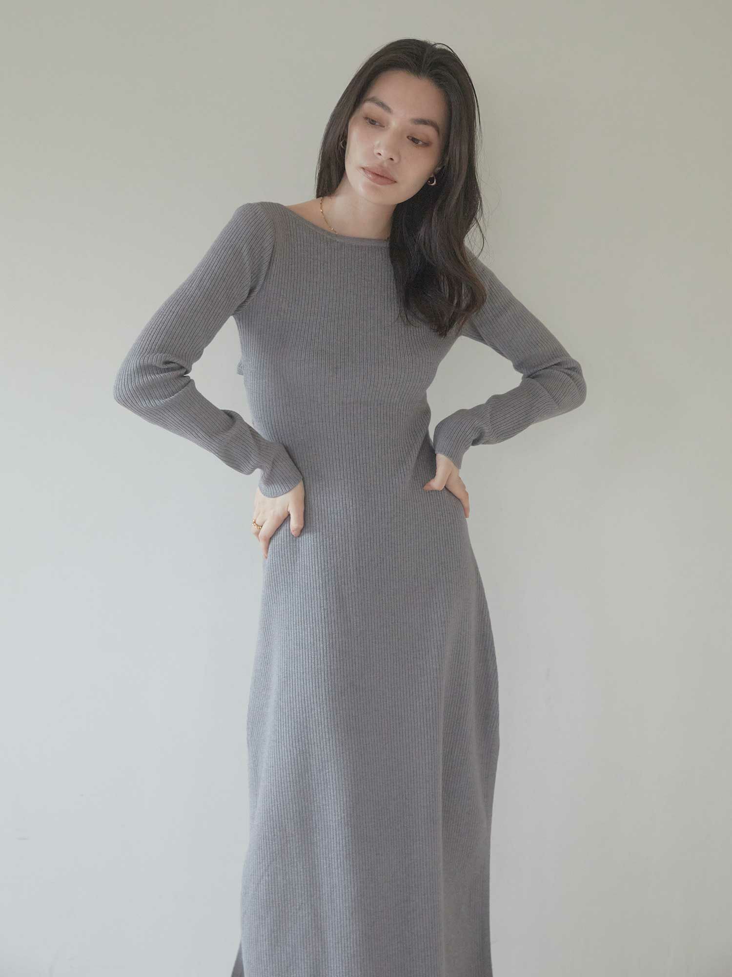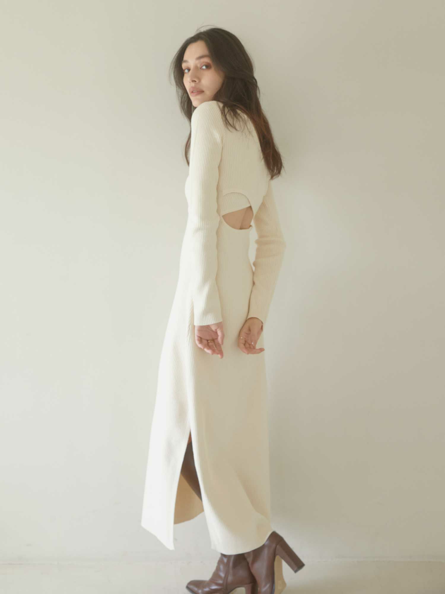 Back open mix knit ワンピース