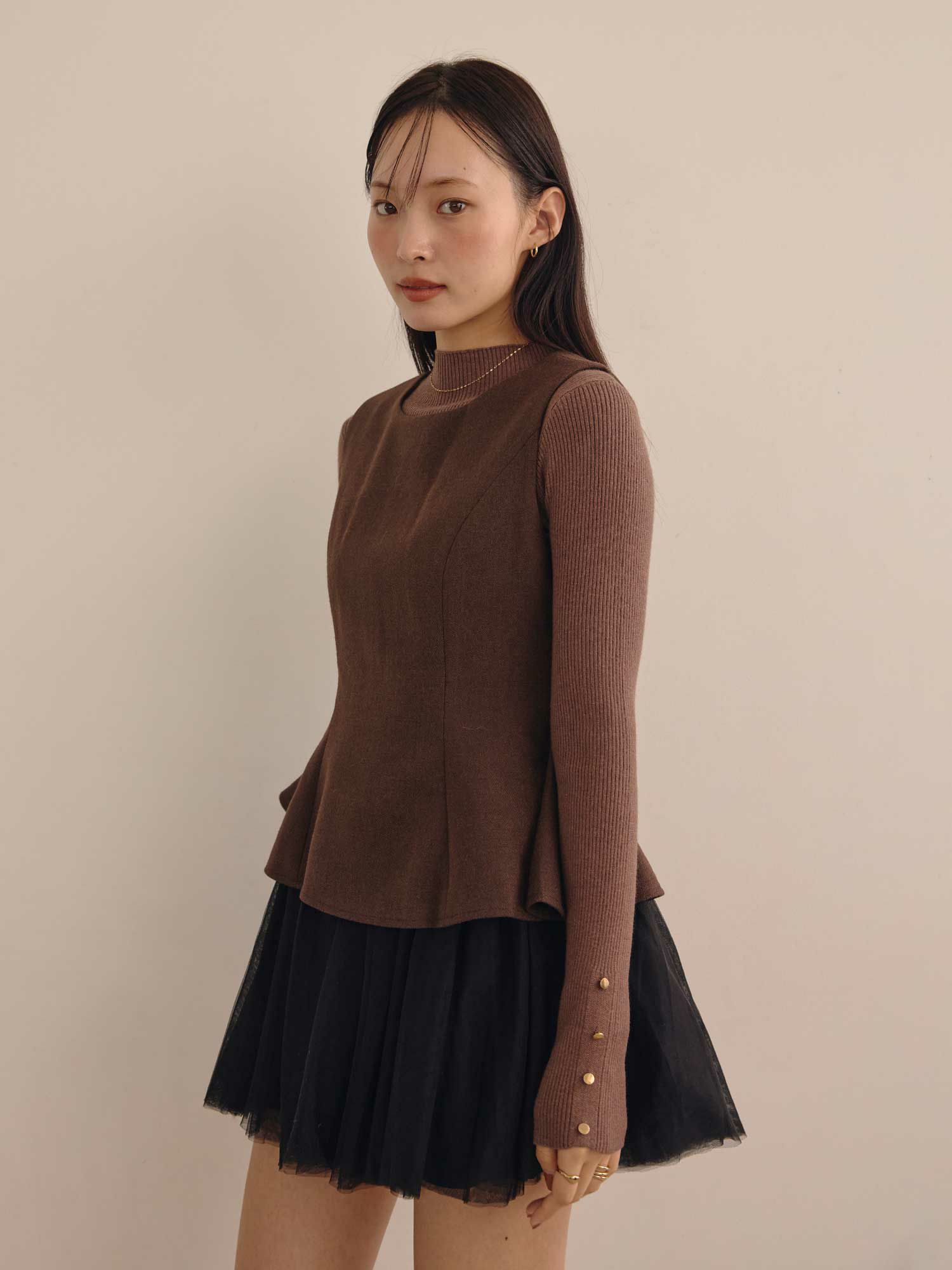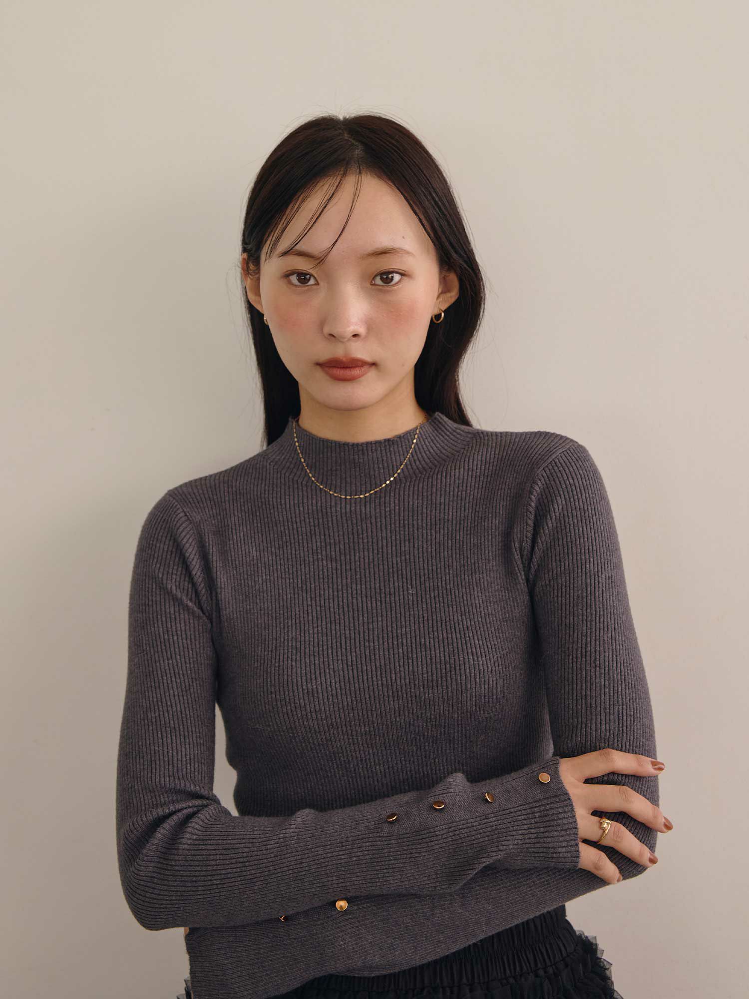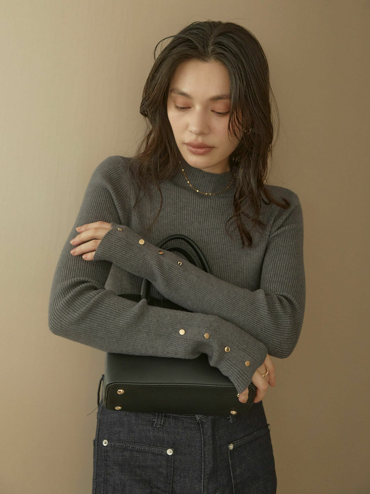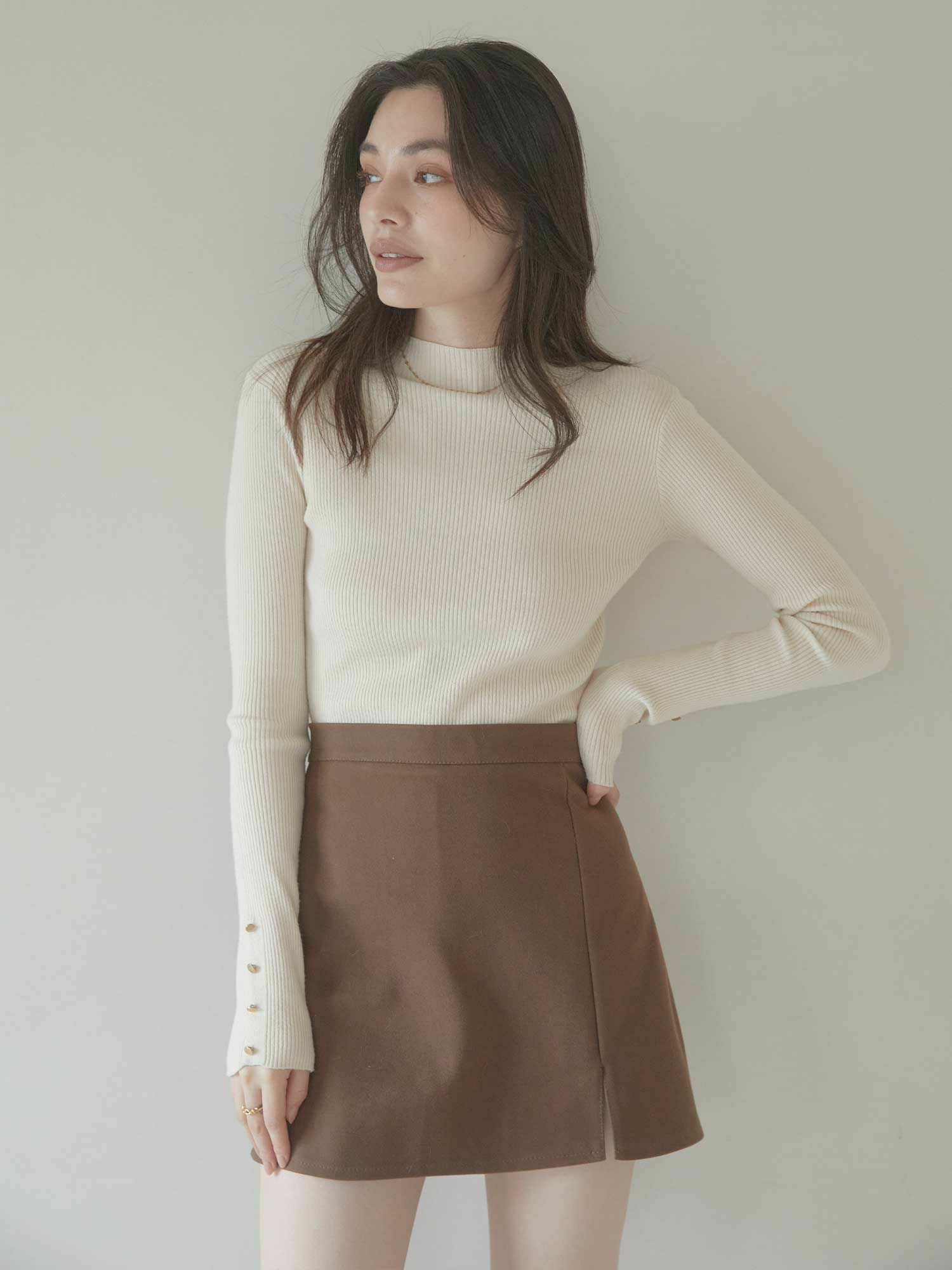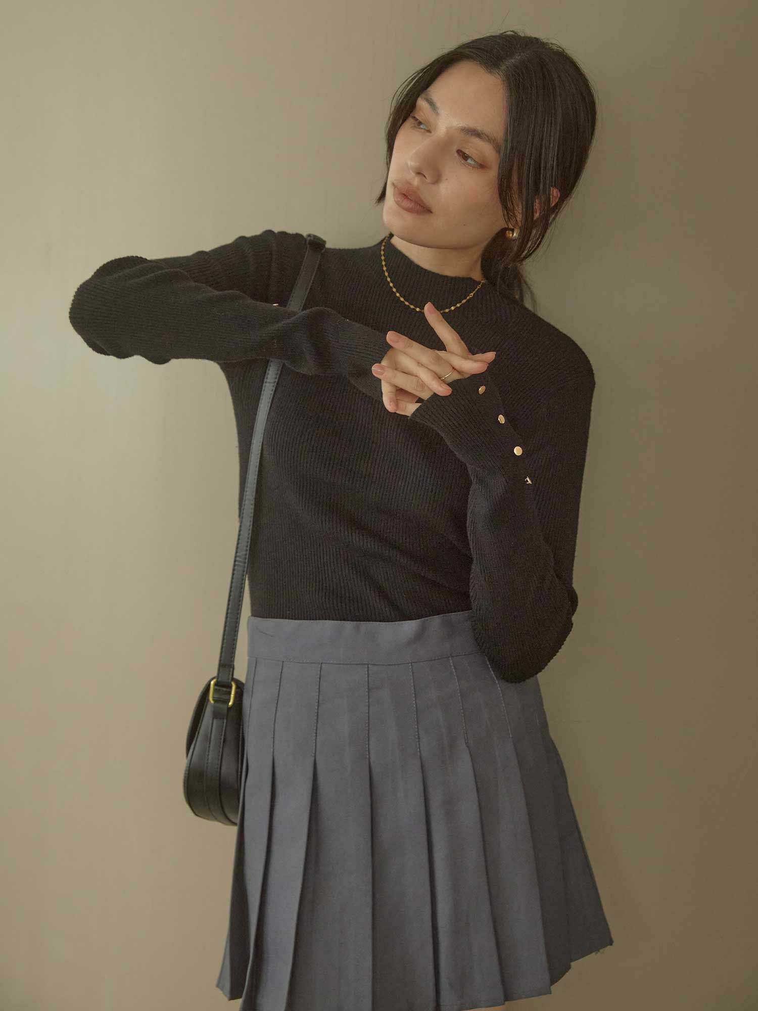 マシュマロボタンスリーブニット