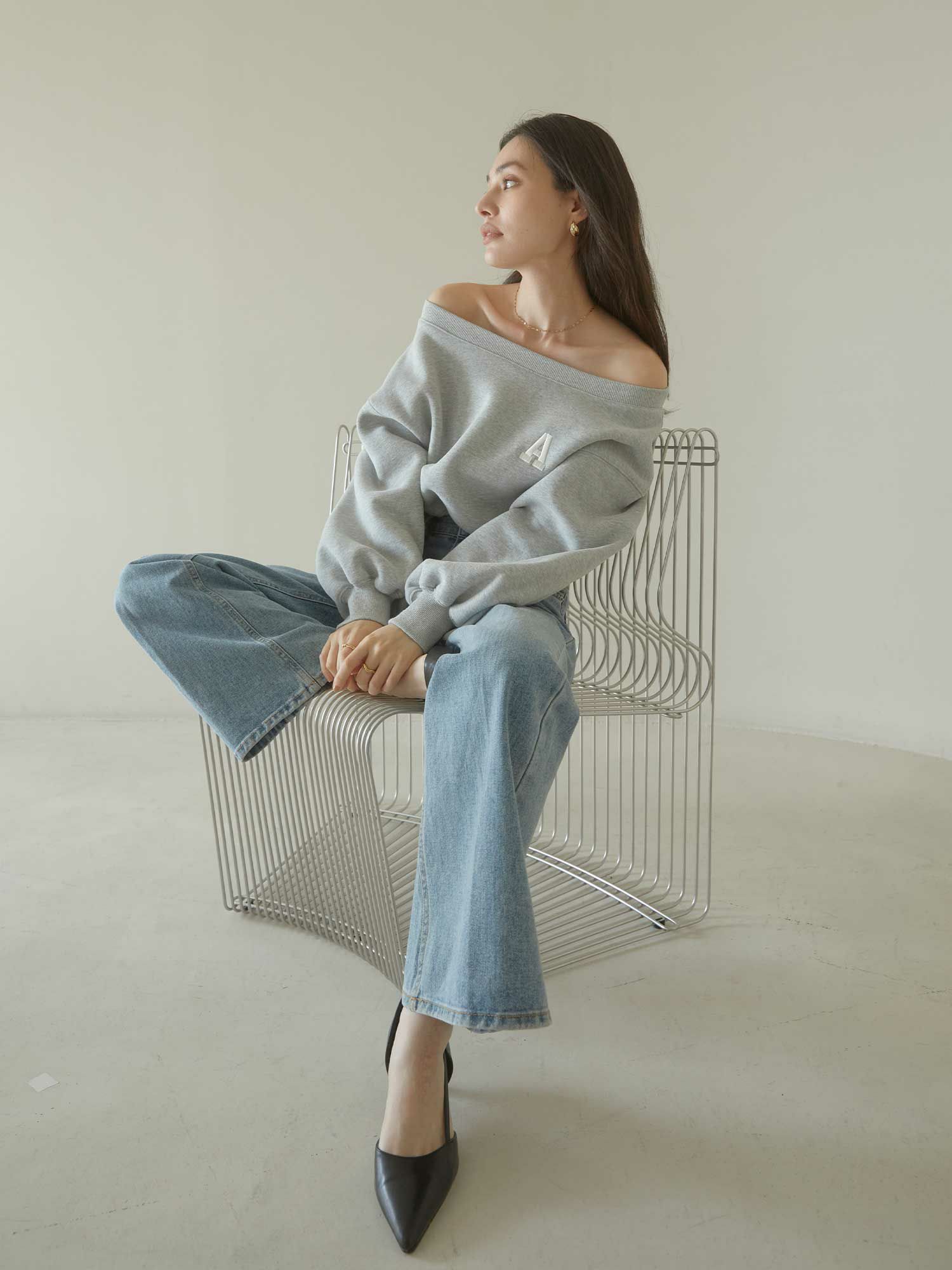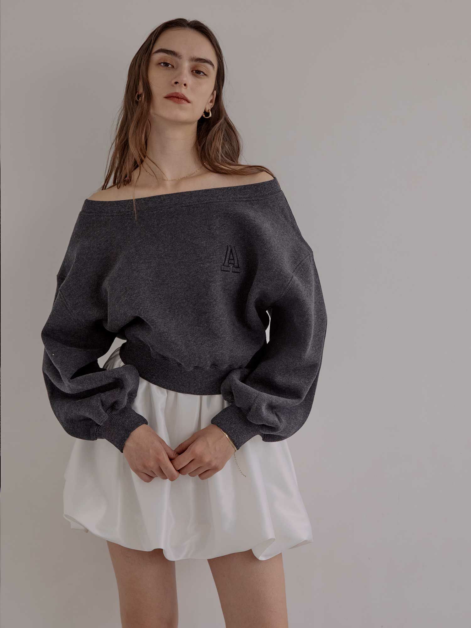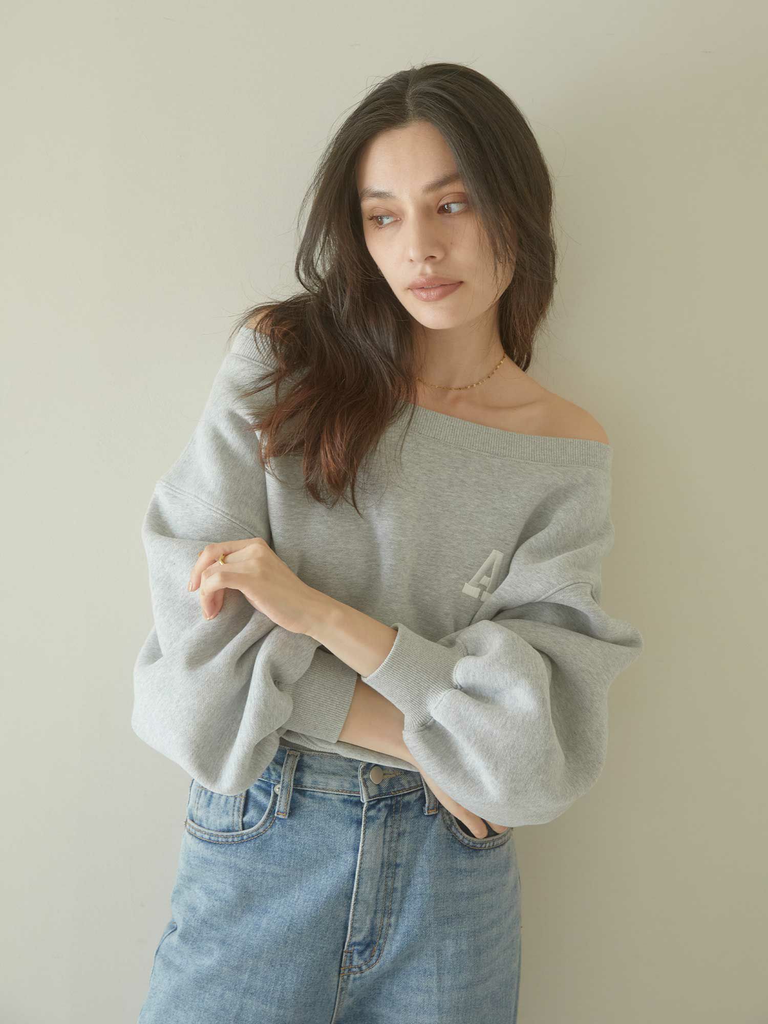 A logo off shoulder スウェット