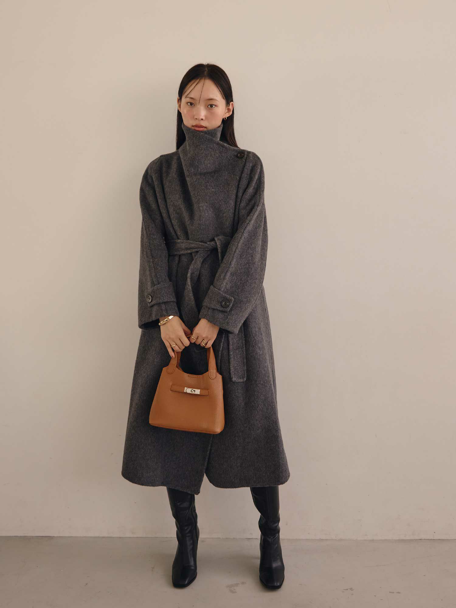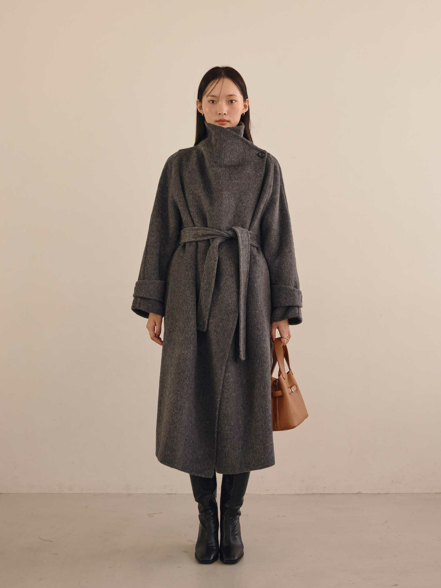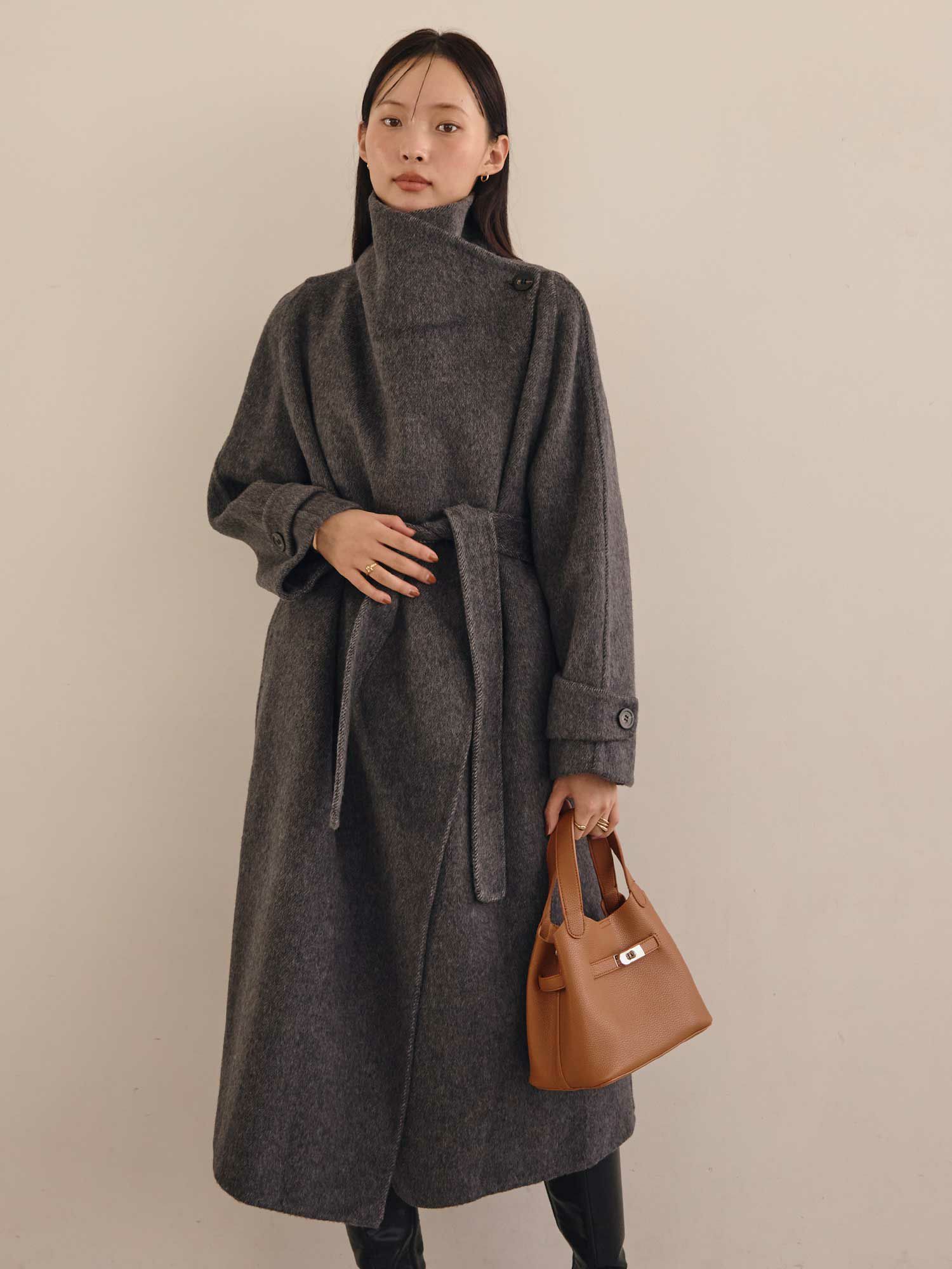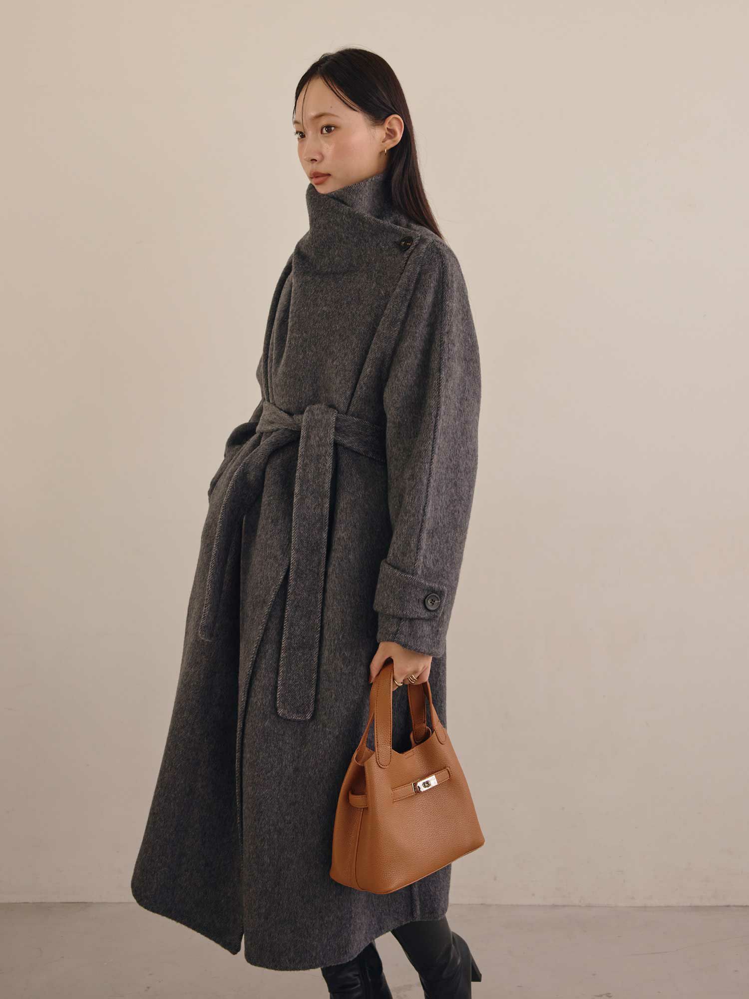 スタンドカラーウールコート