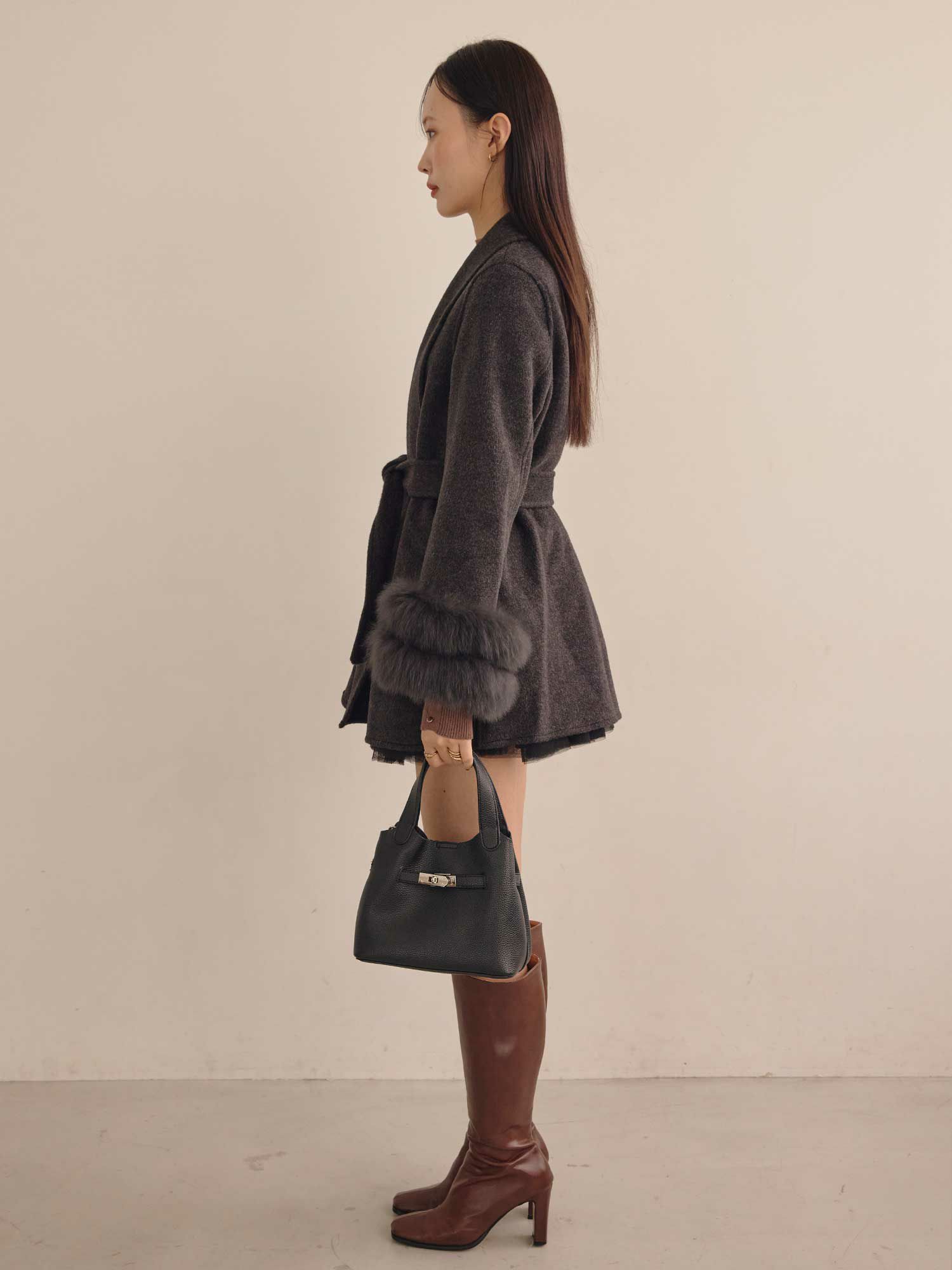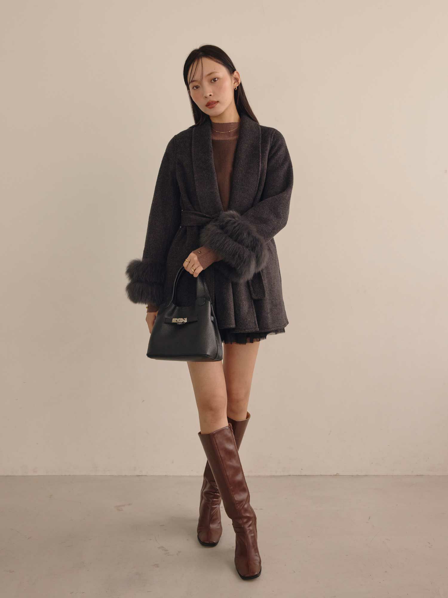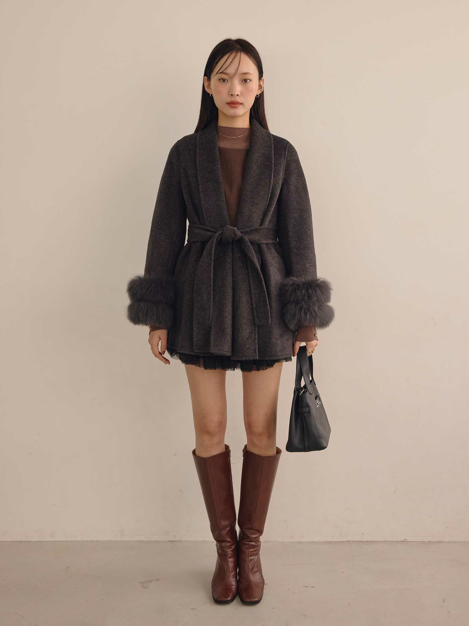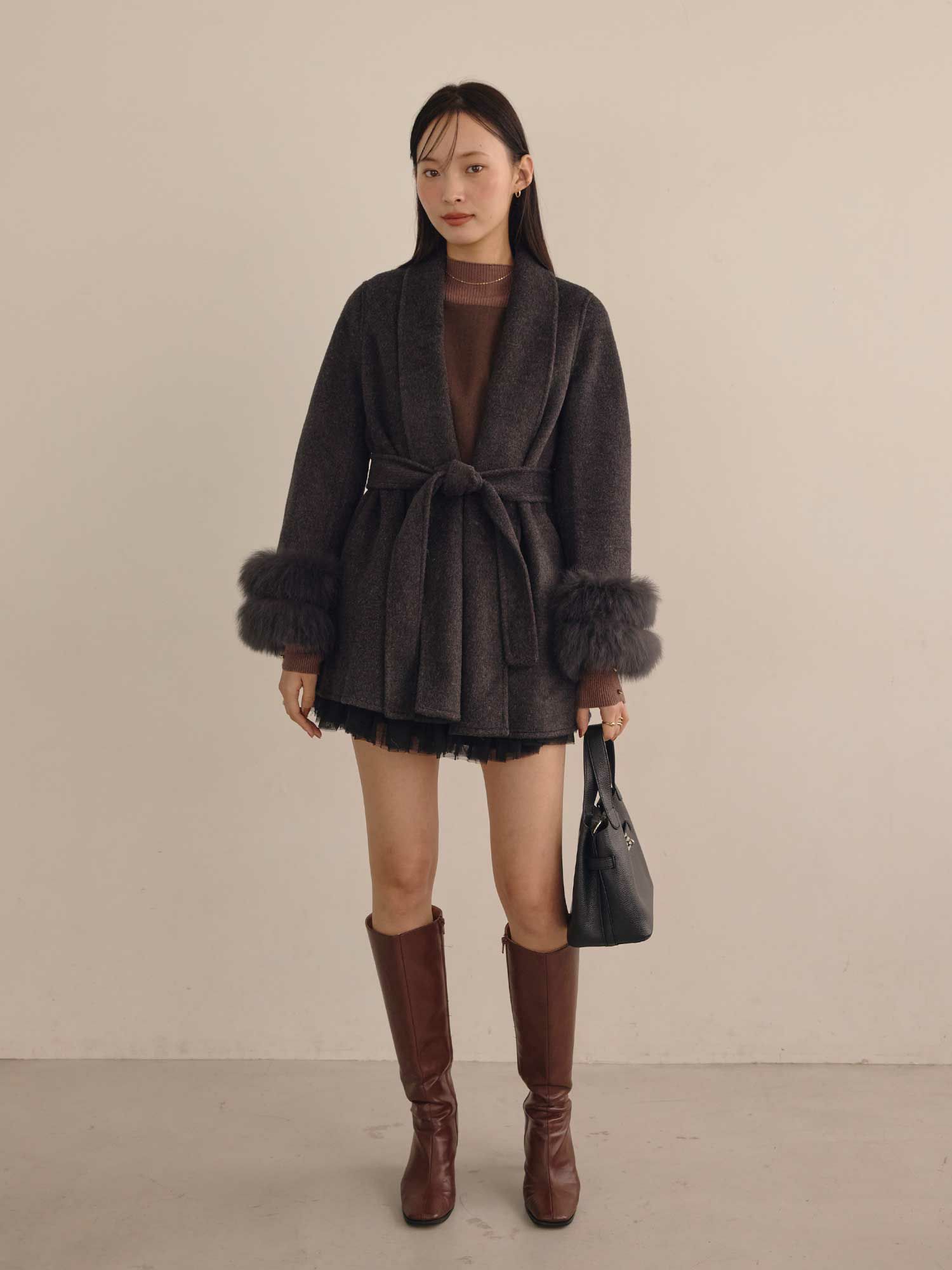 ショールカラーポイントファーコート