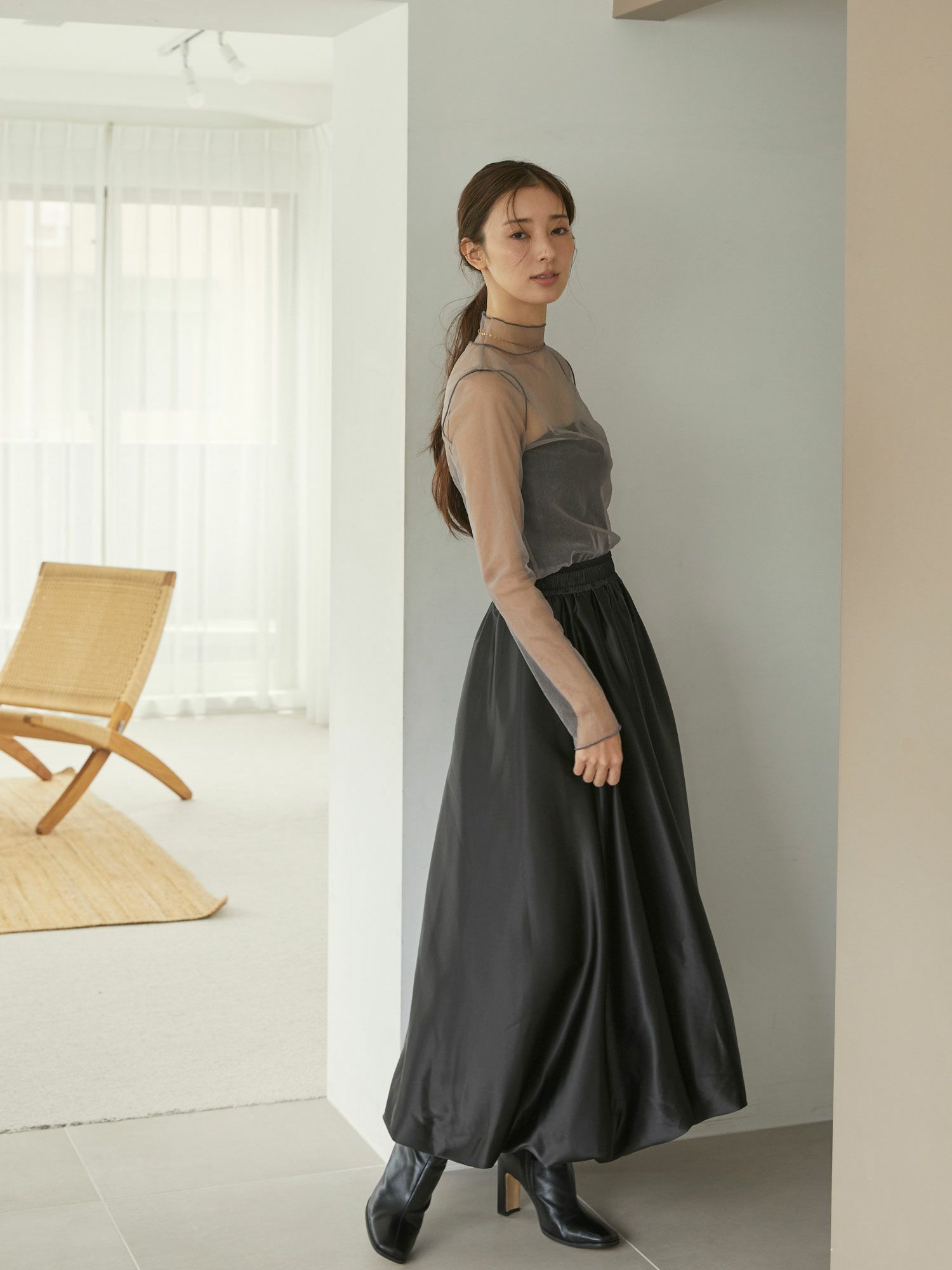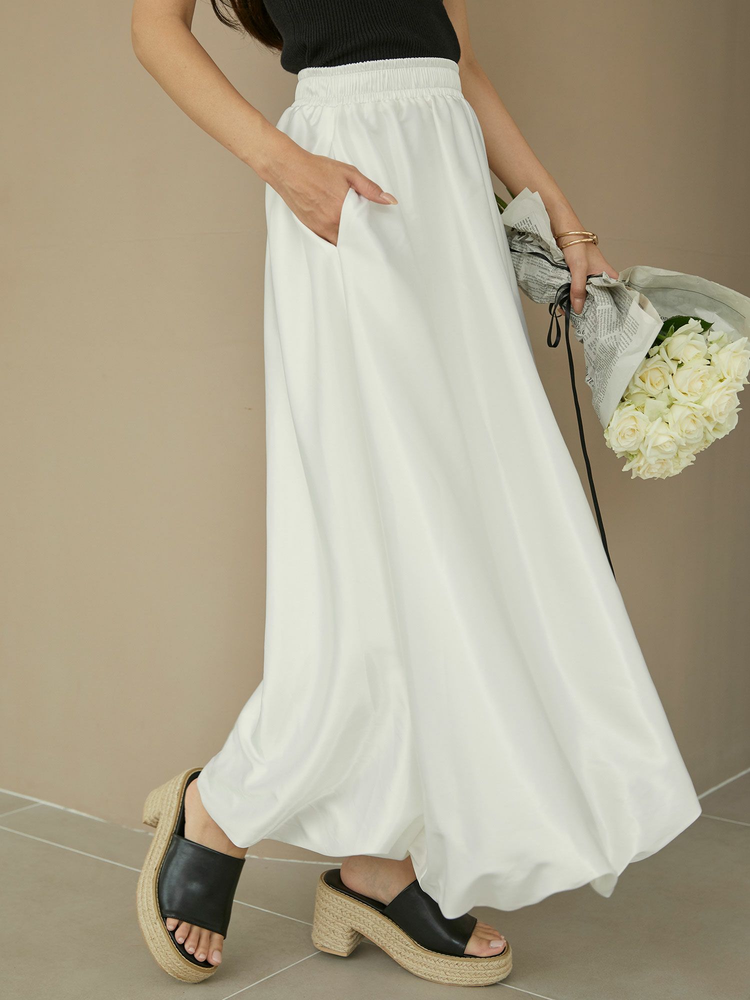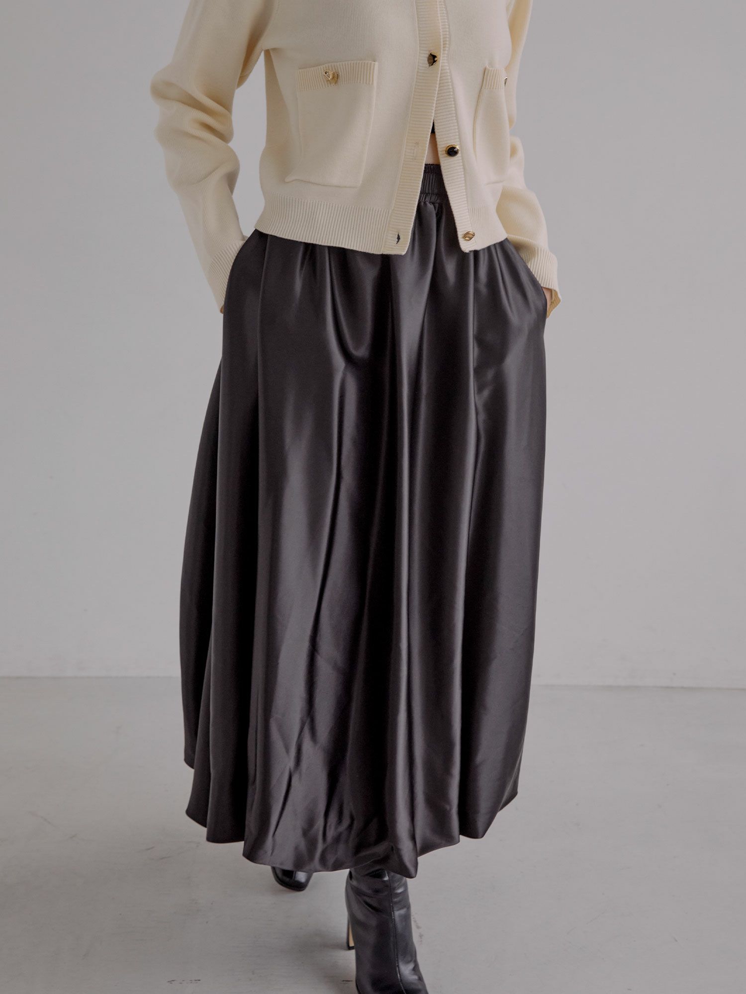 サテンバルーンロングスカート