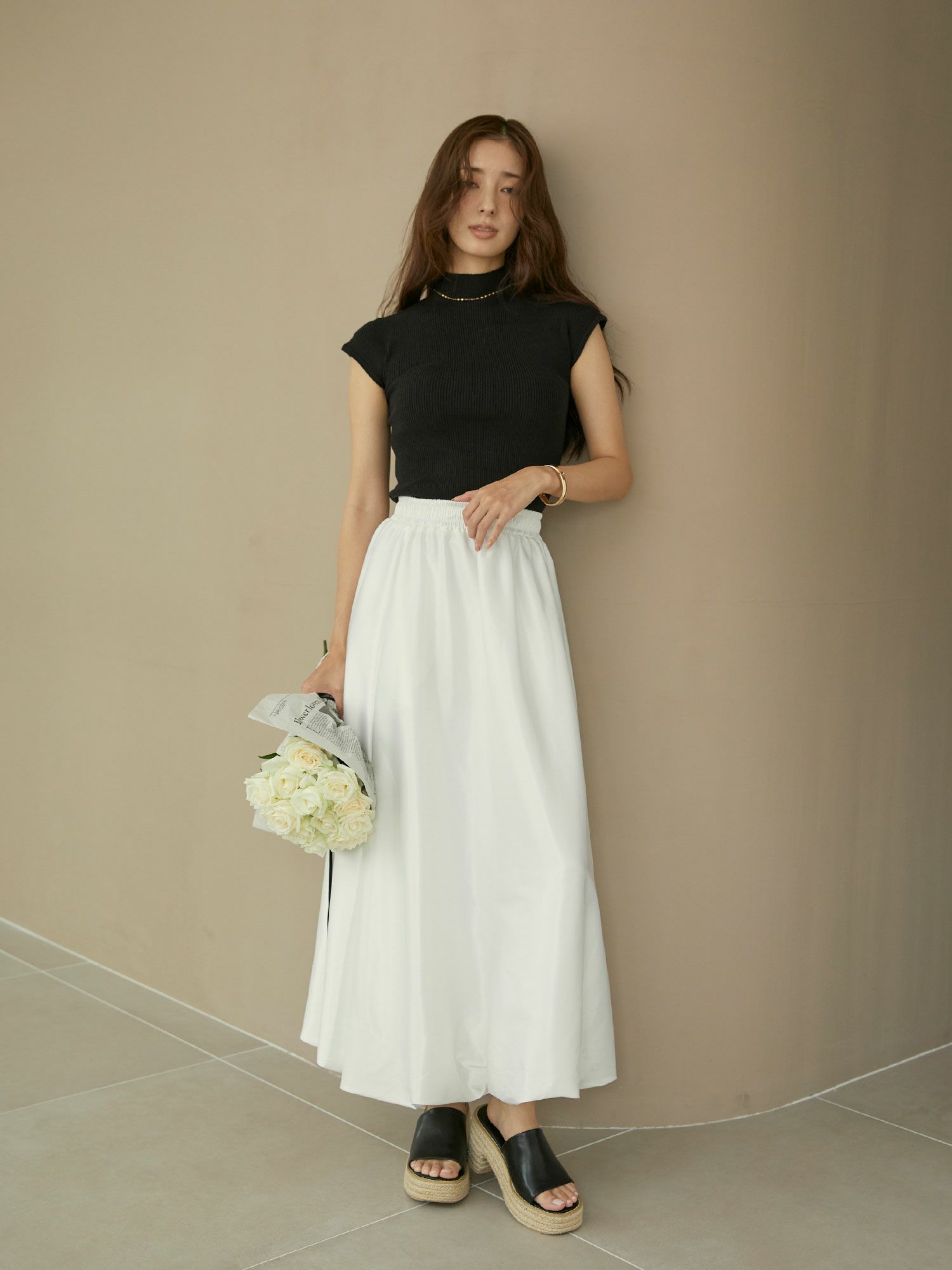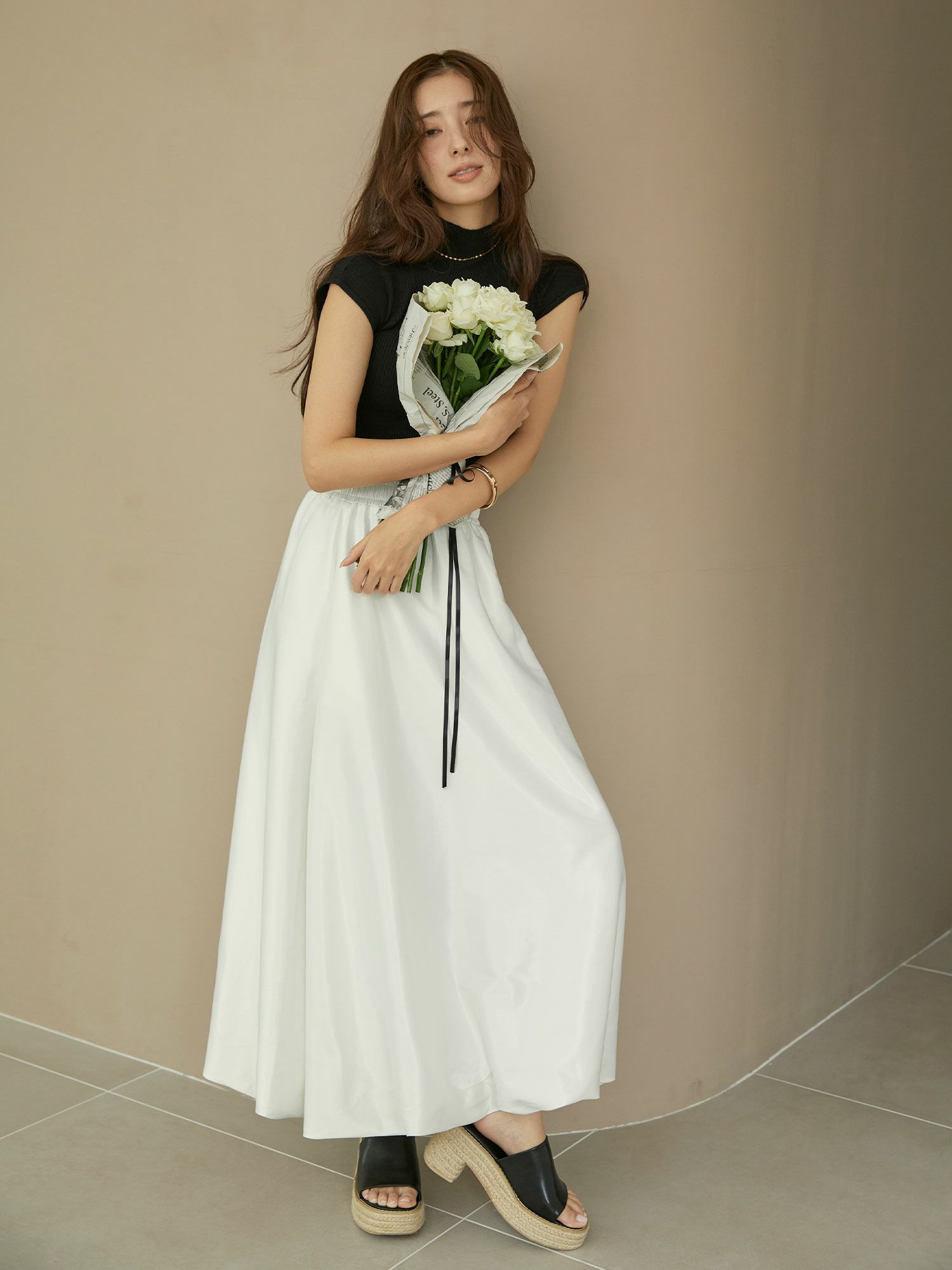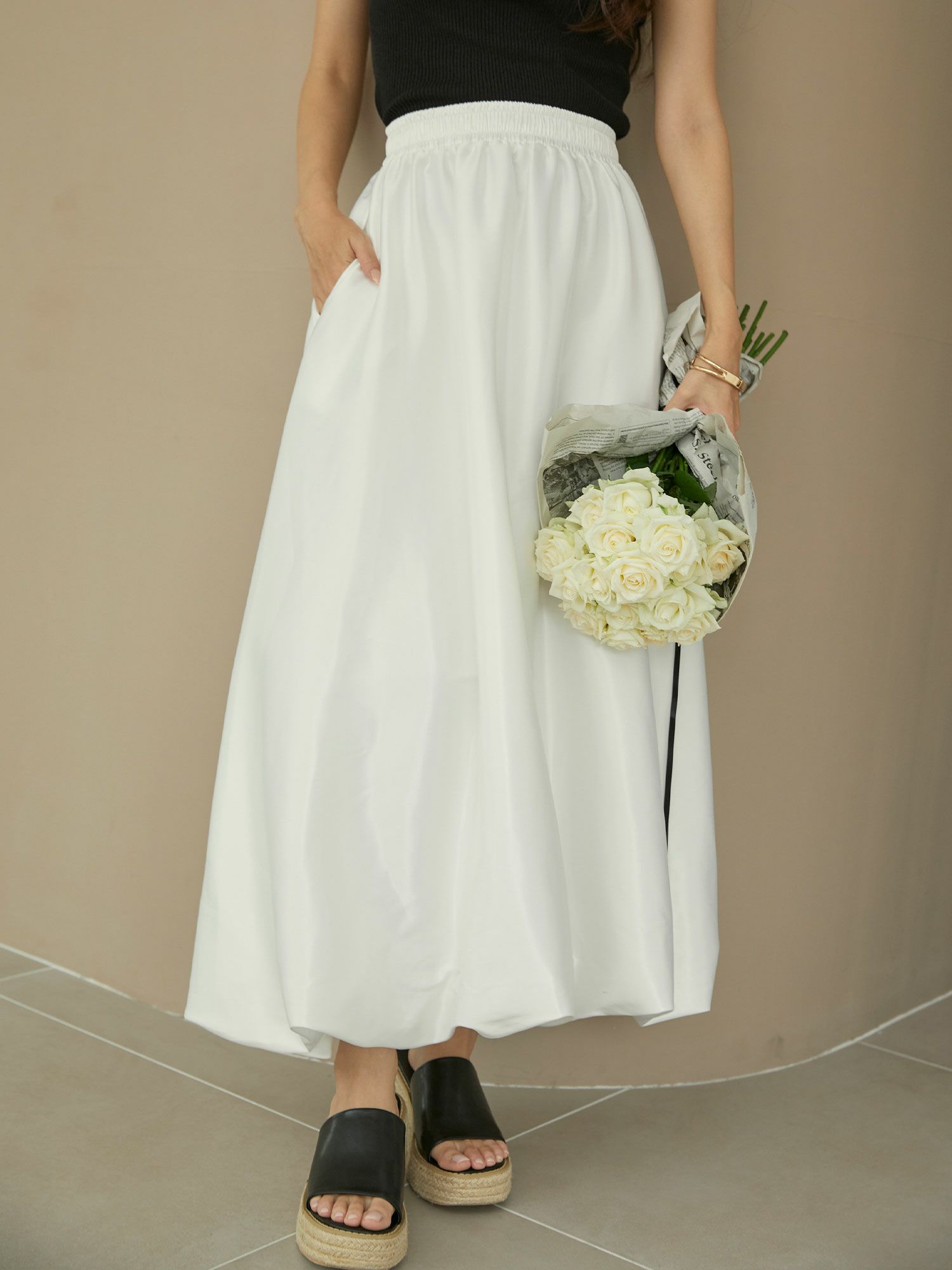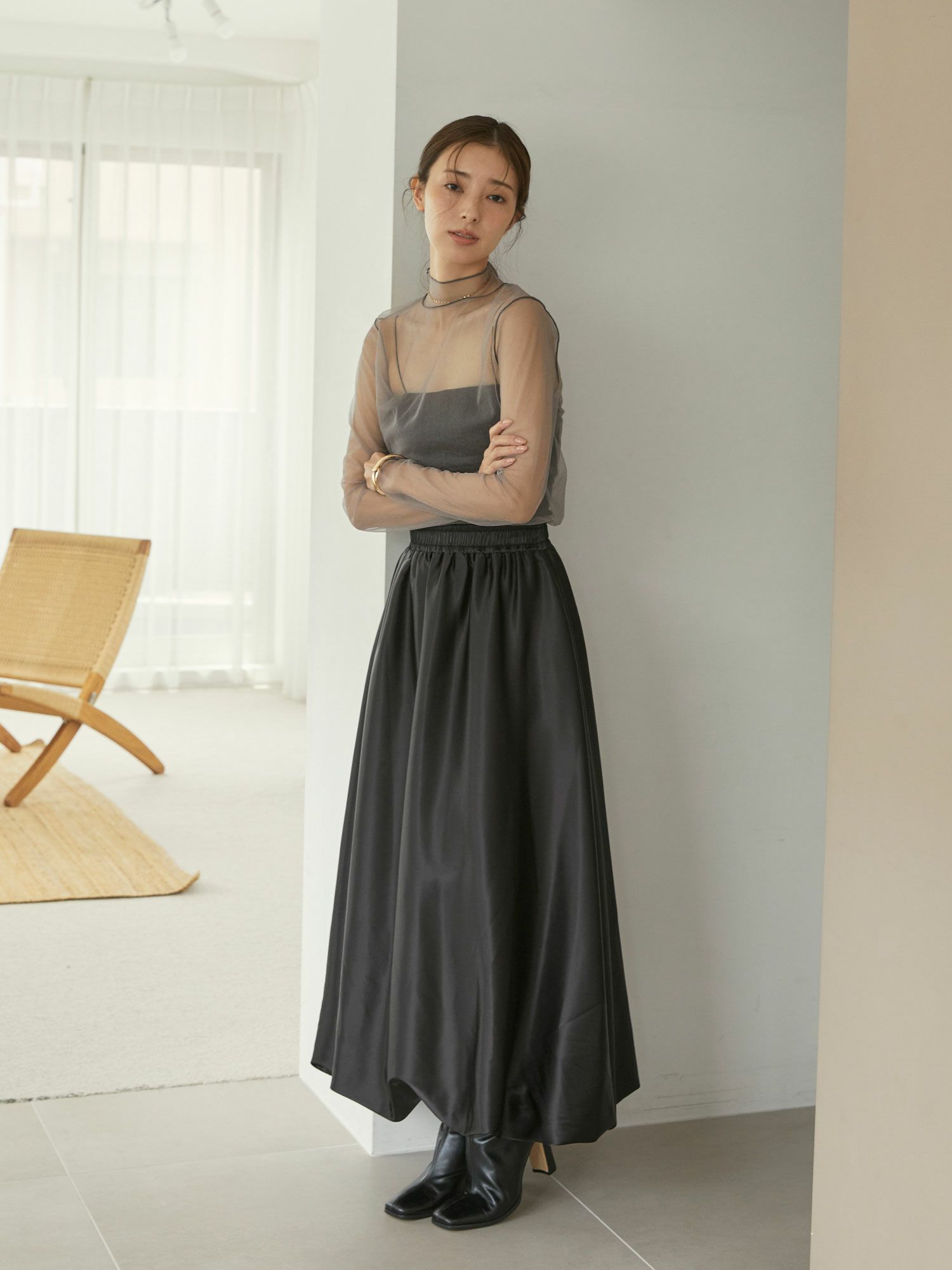 サテンバルーンロングスカート