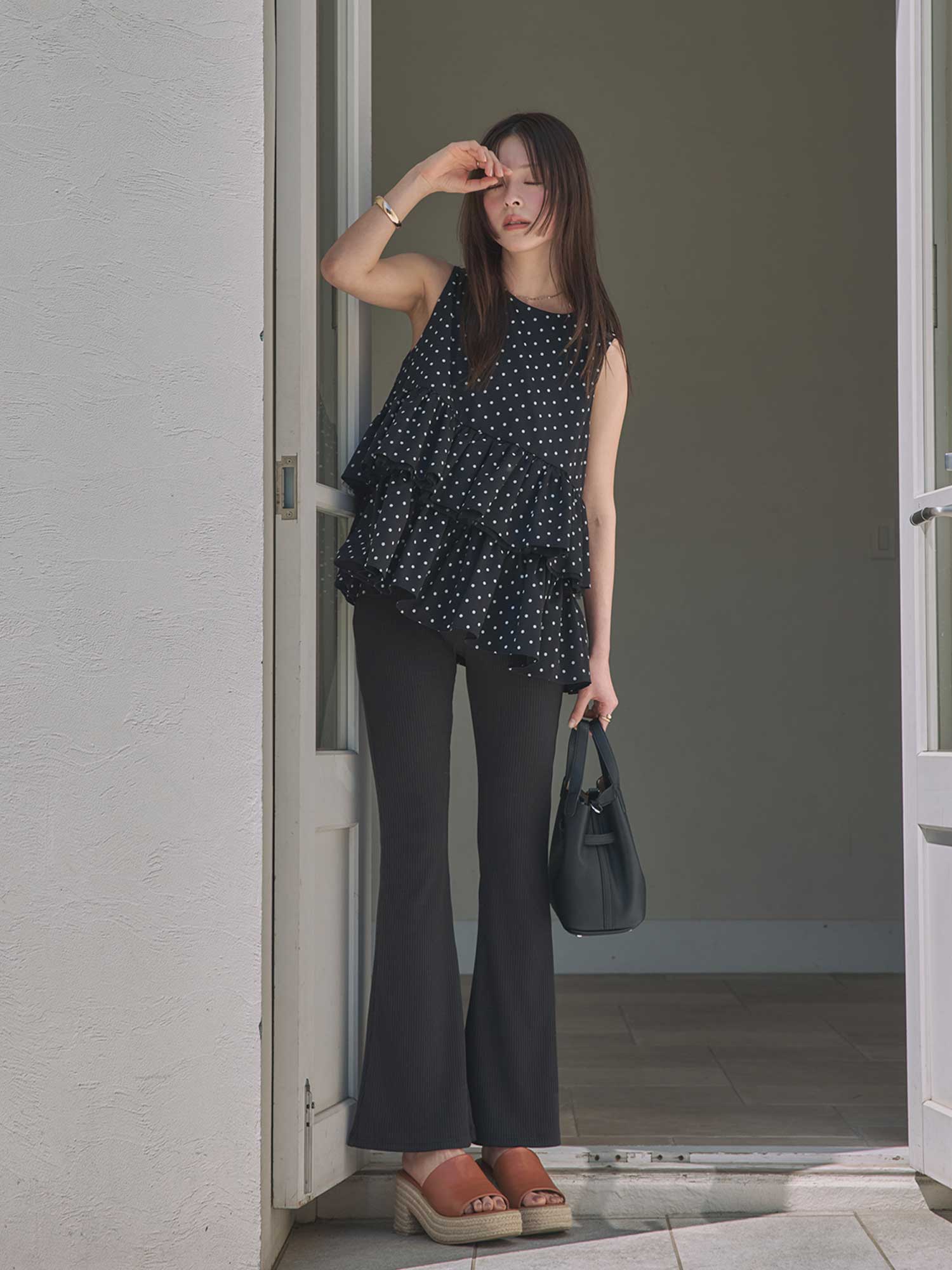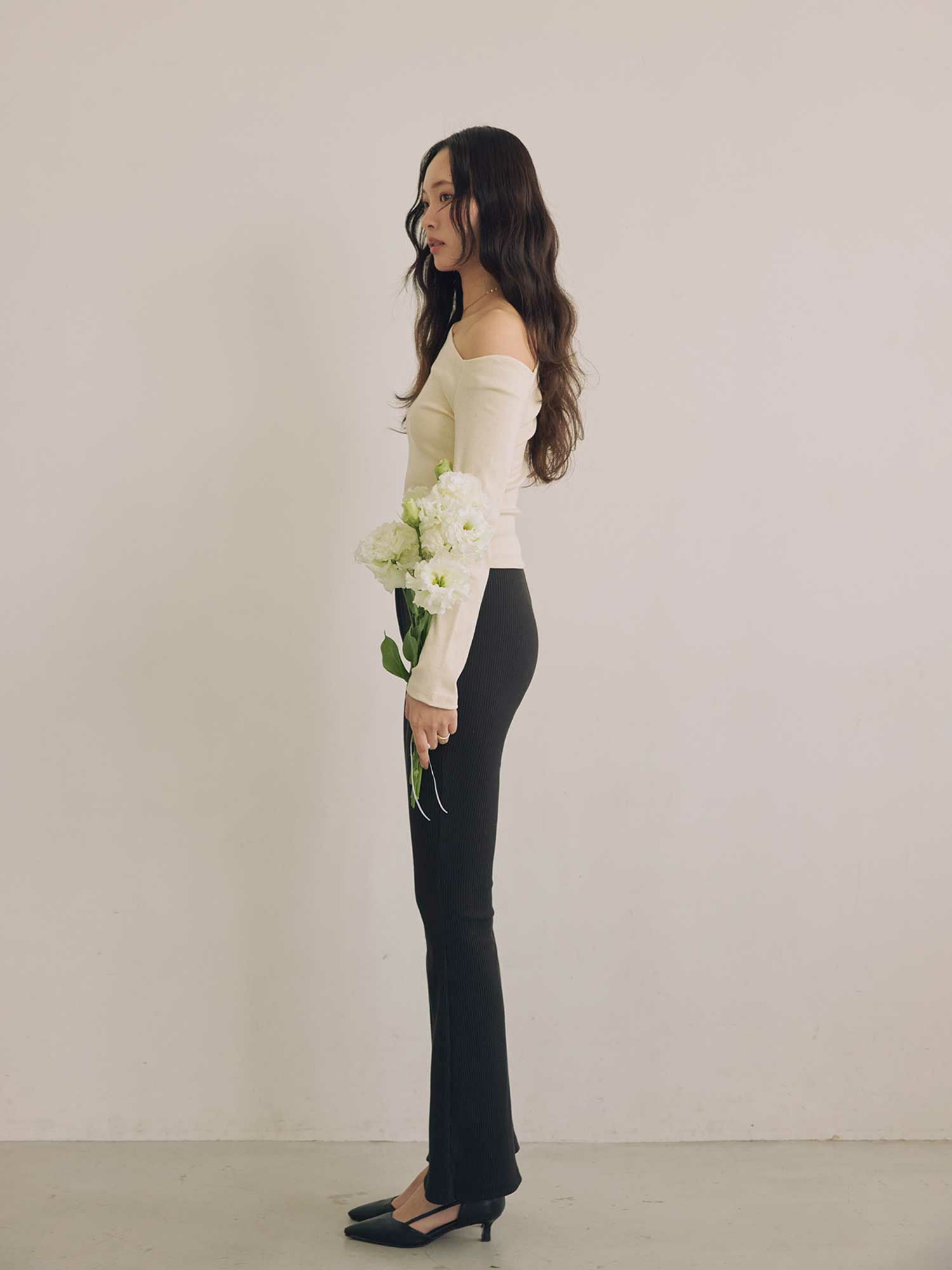ヒールでより脚長効果を高めるのはもちろん、スニーカー合わせでカジュアルダウンもおすすめ。