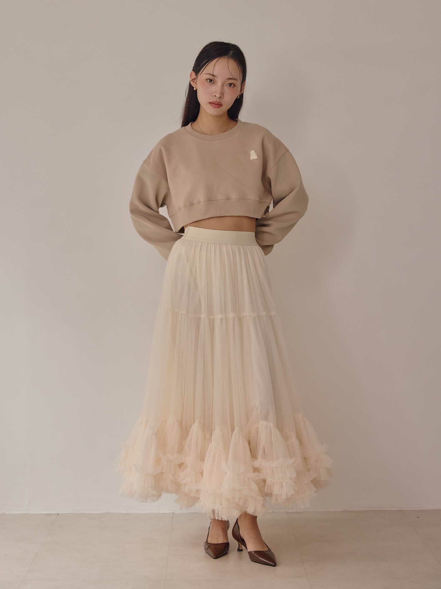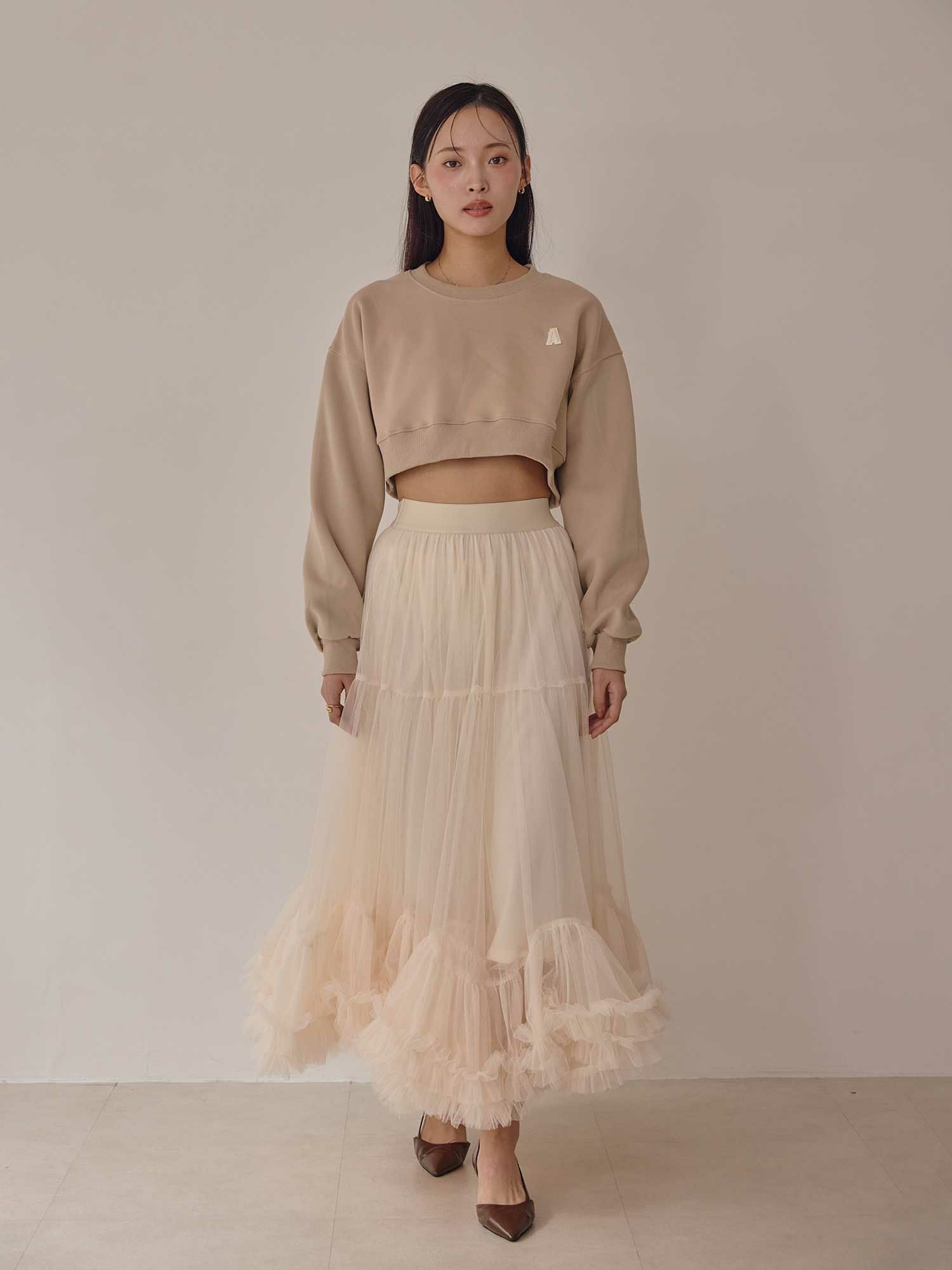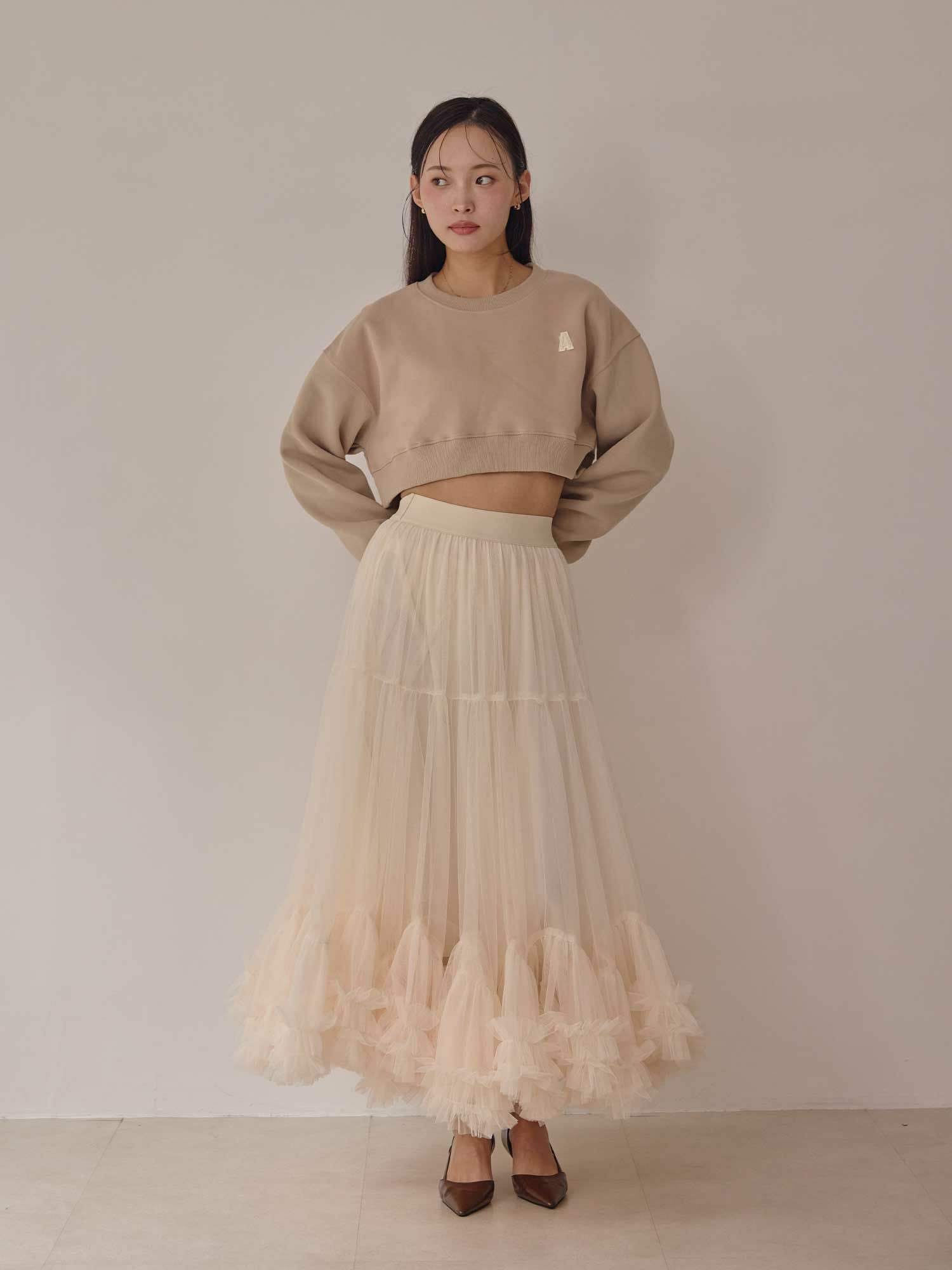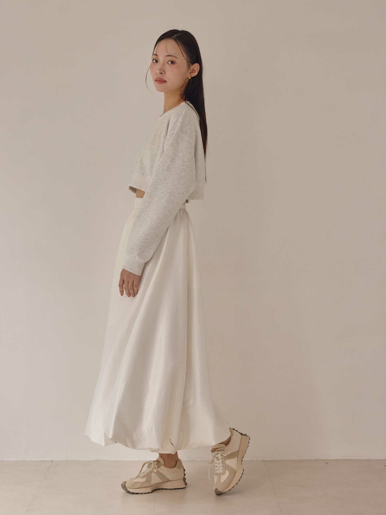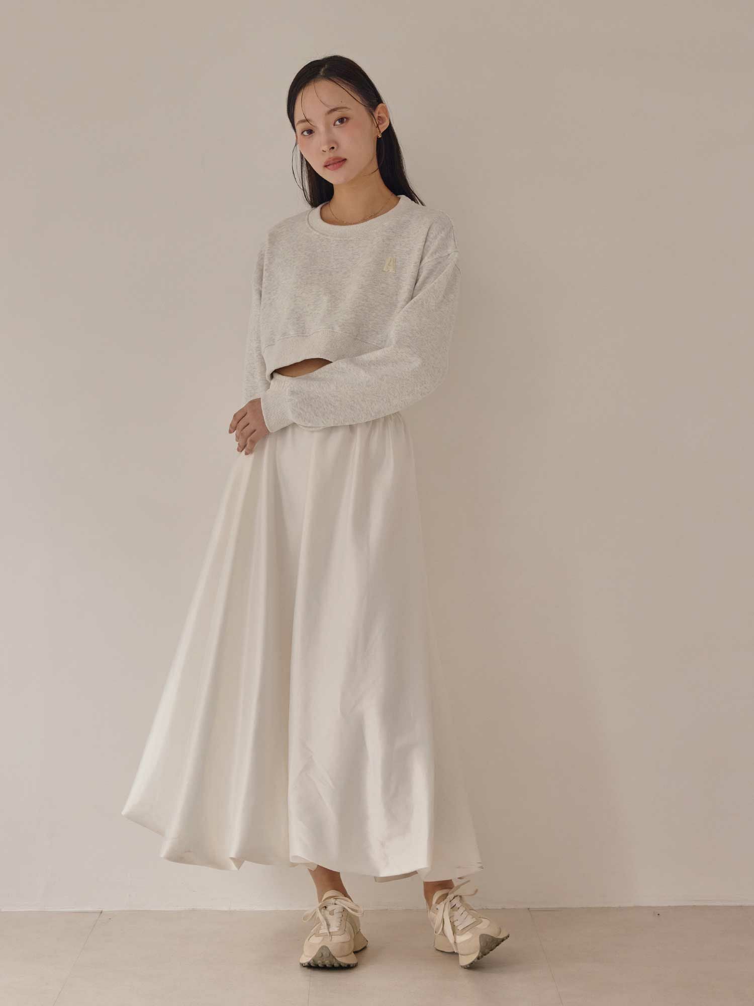 カジュアルな印象のスエットをクロップド丈で女性らしく仕上げたショートトップスです。