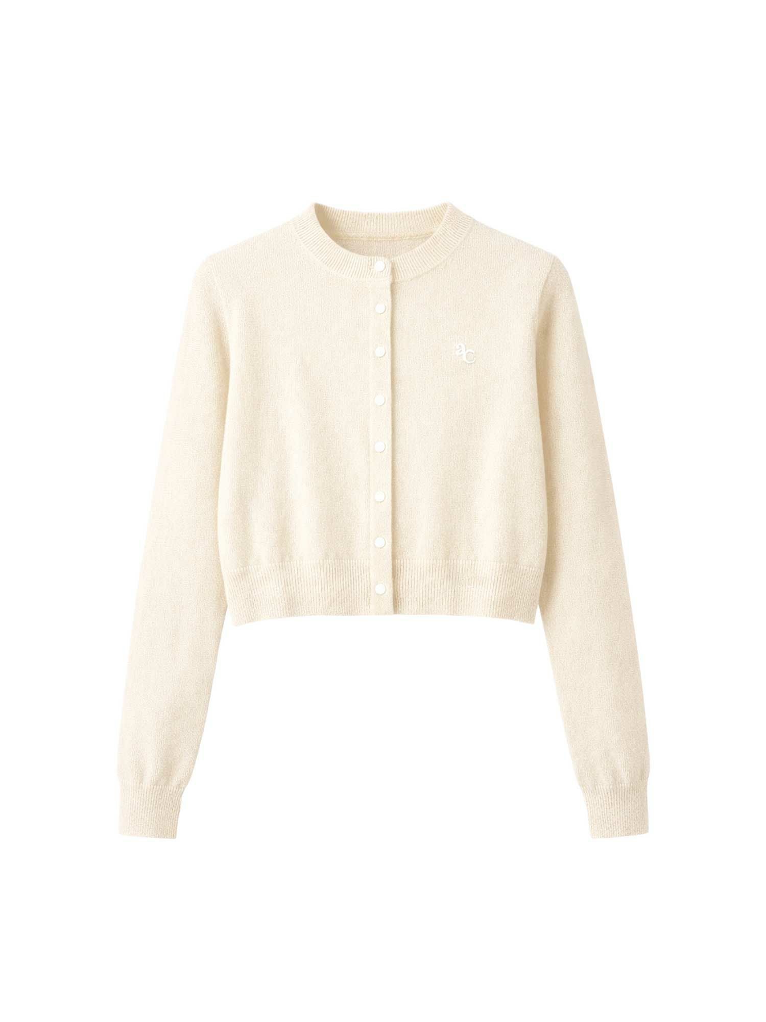 コンパクトな丈感が特徴のクルーネックカーディガン。