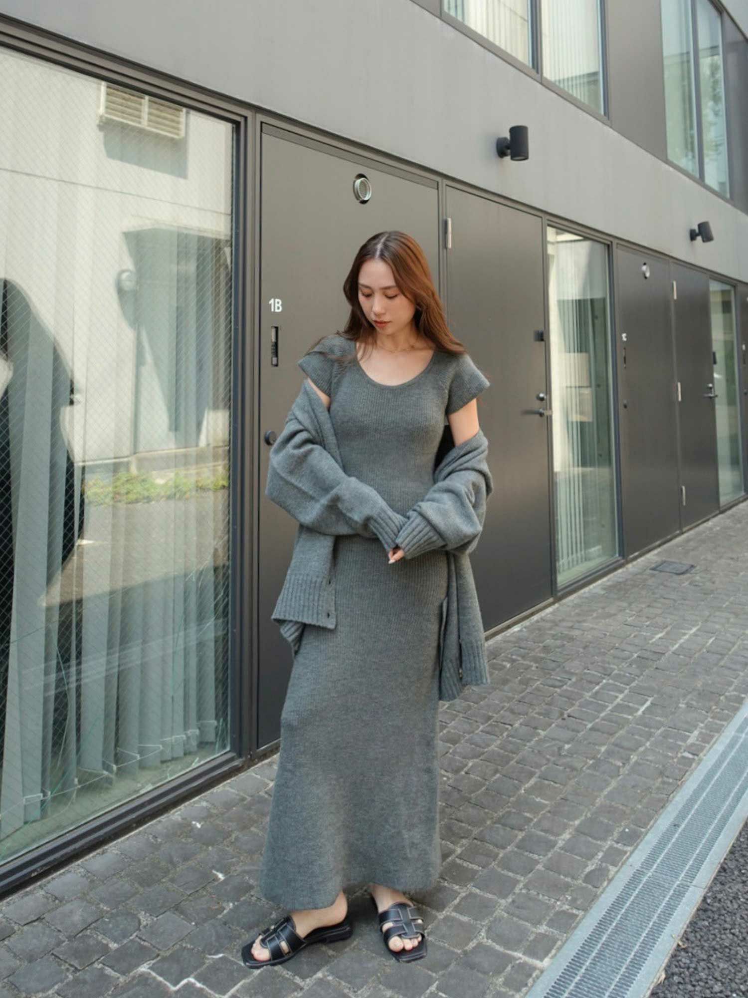 同素材の Betty over knit カーディガン とセットでの着用だけでなく、ジャケットやボリュームのあるアウターと合わせたスタイリングもおすすめです。