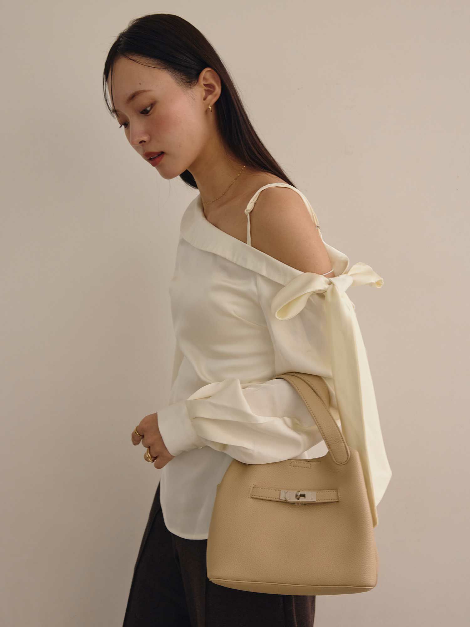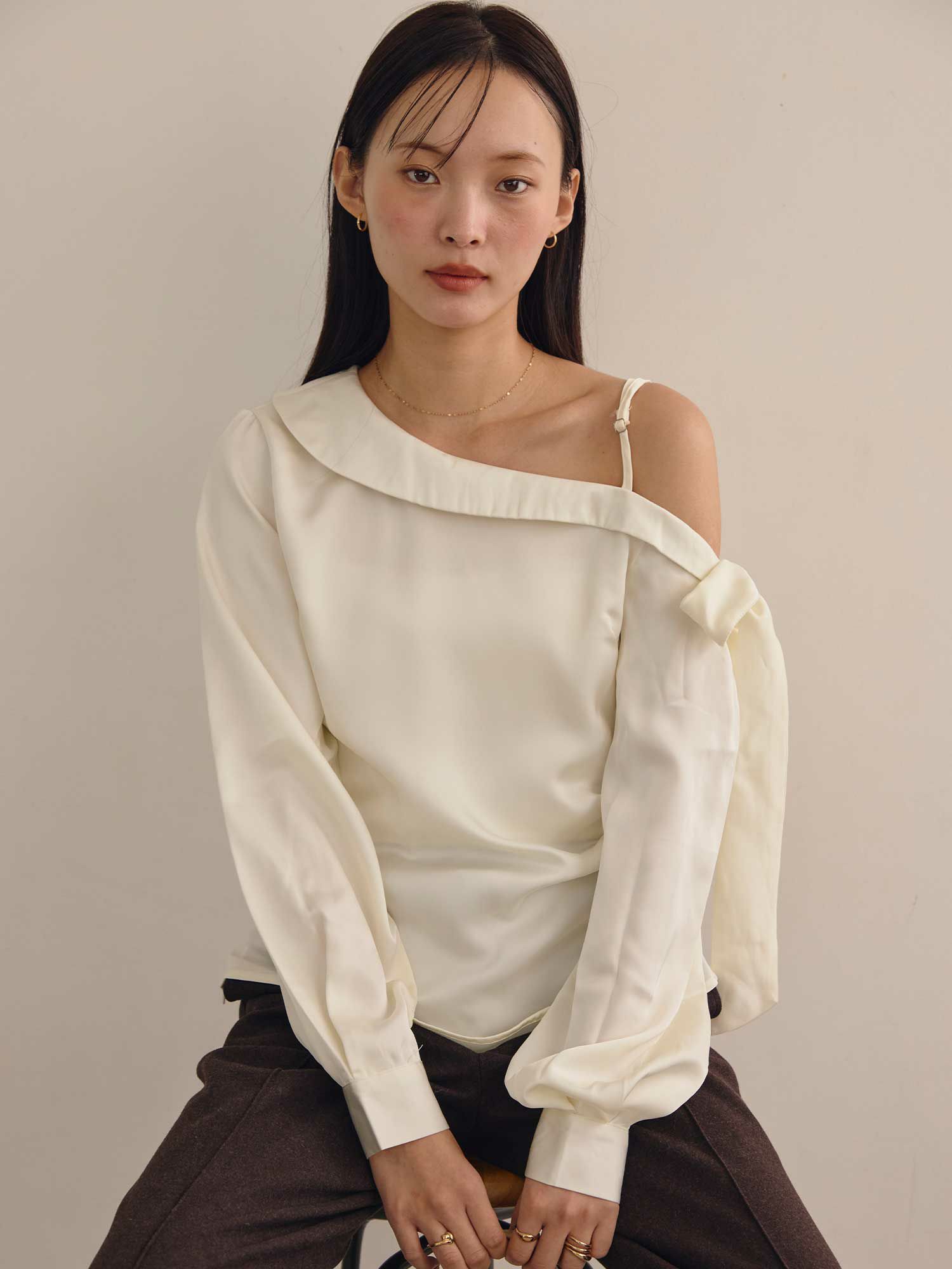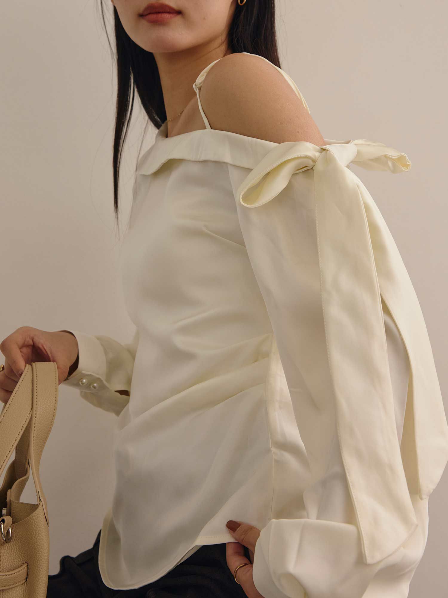 リボンオフショルダーブラウス