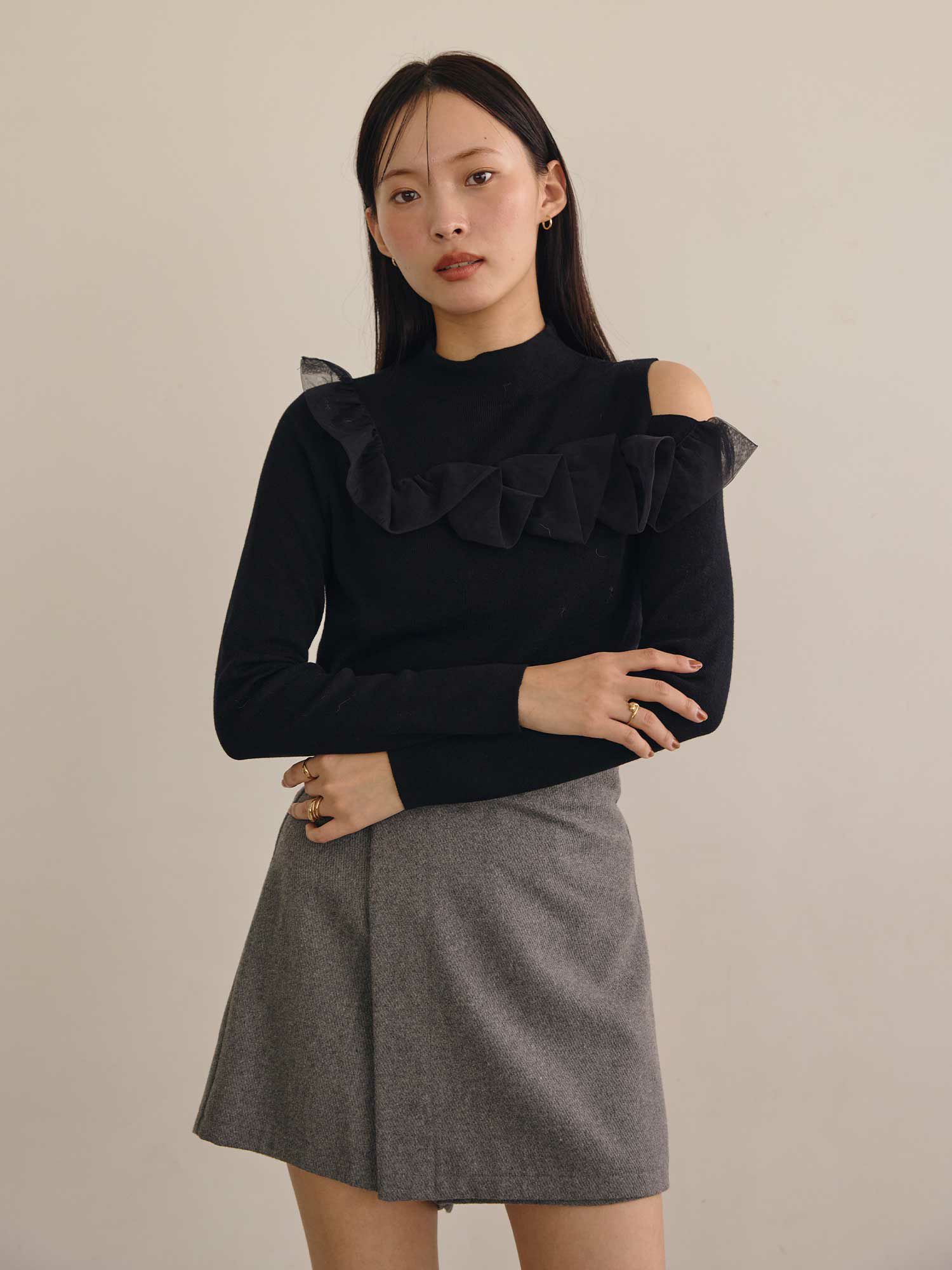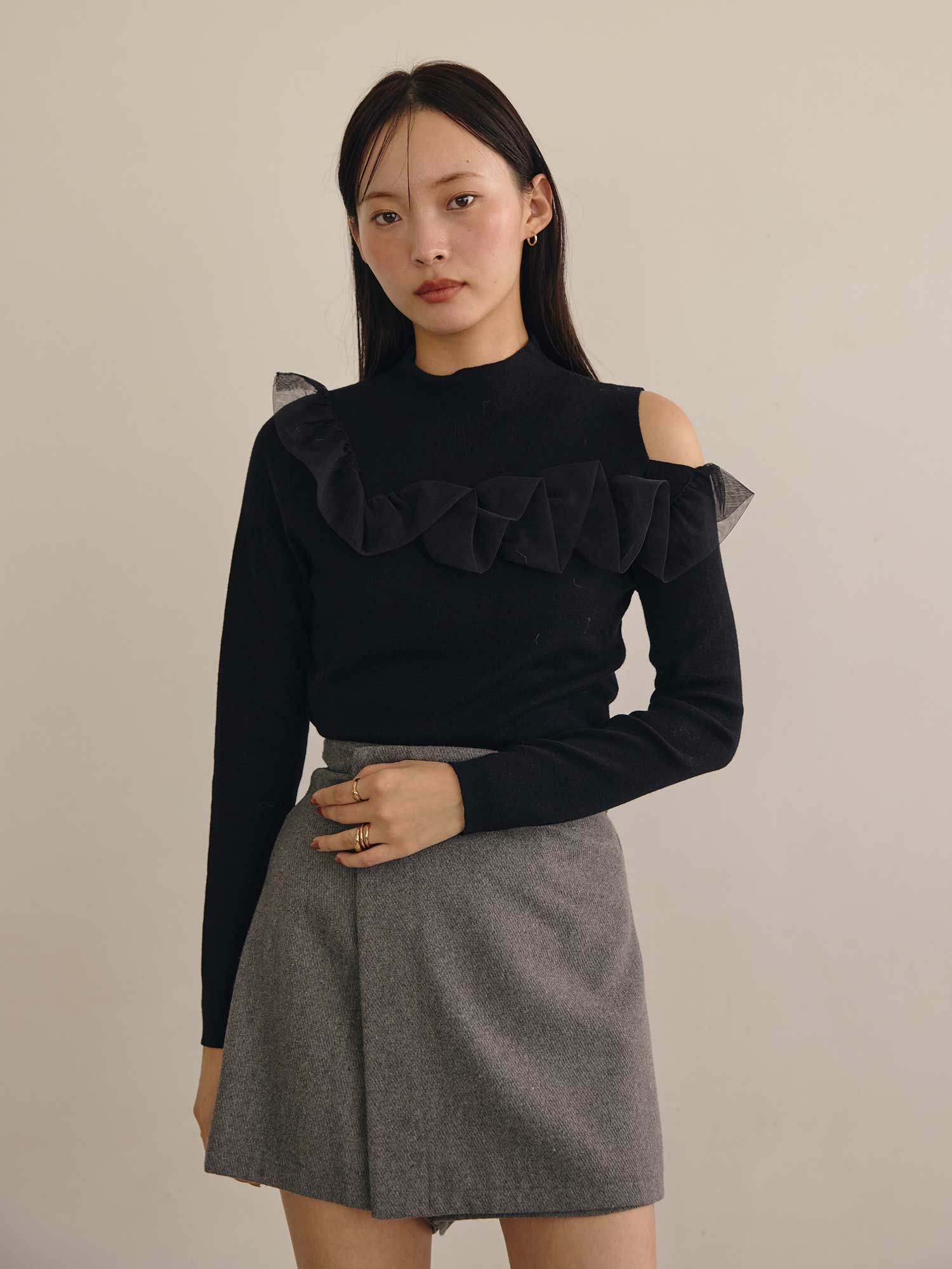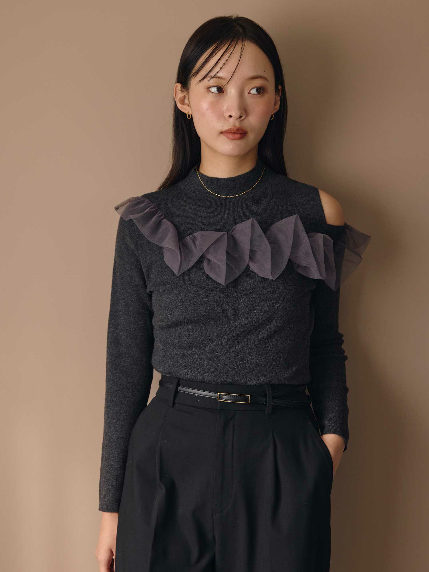 チュールコンビワンショルダーニット