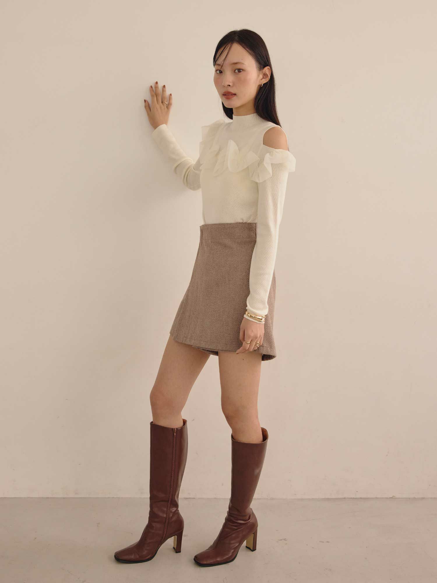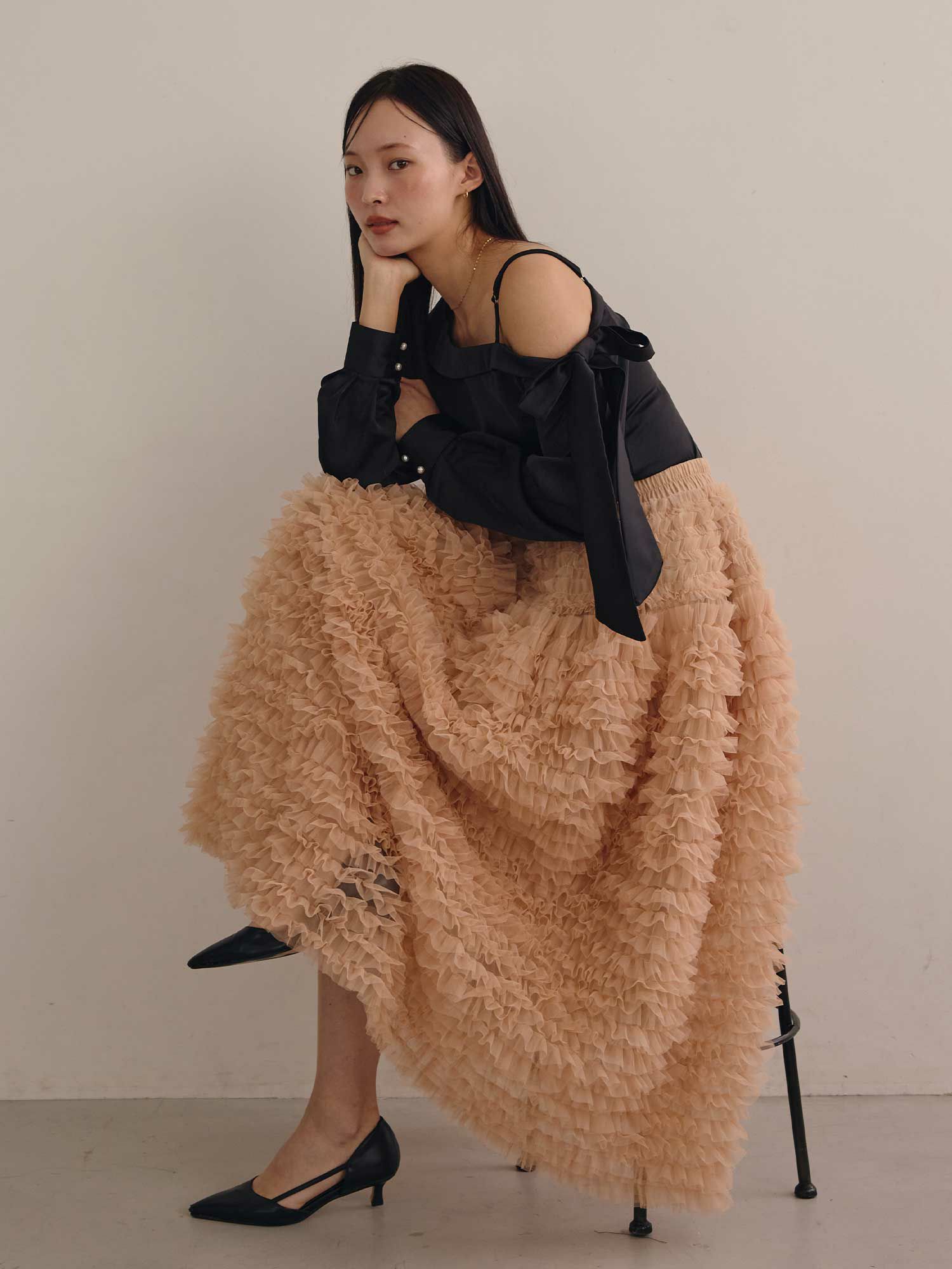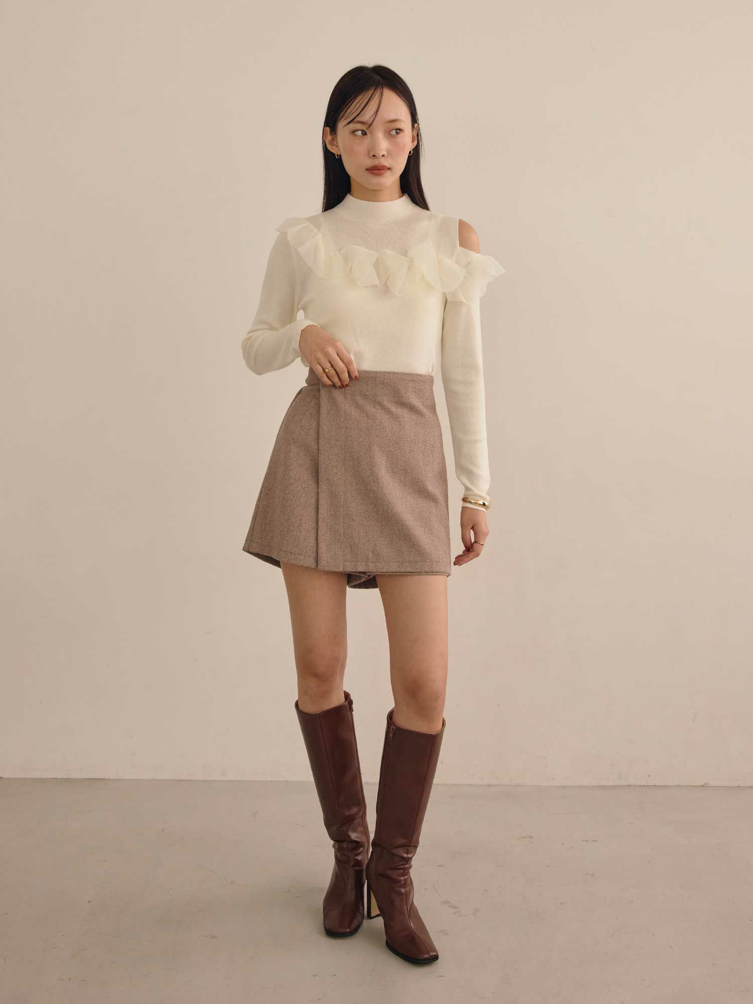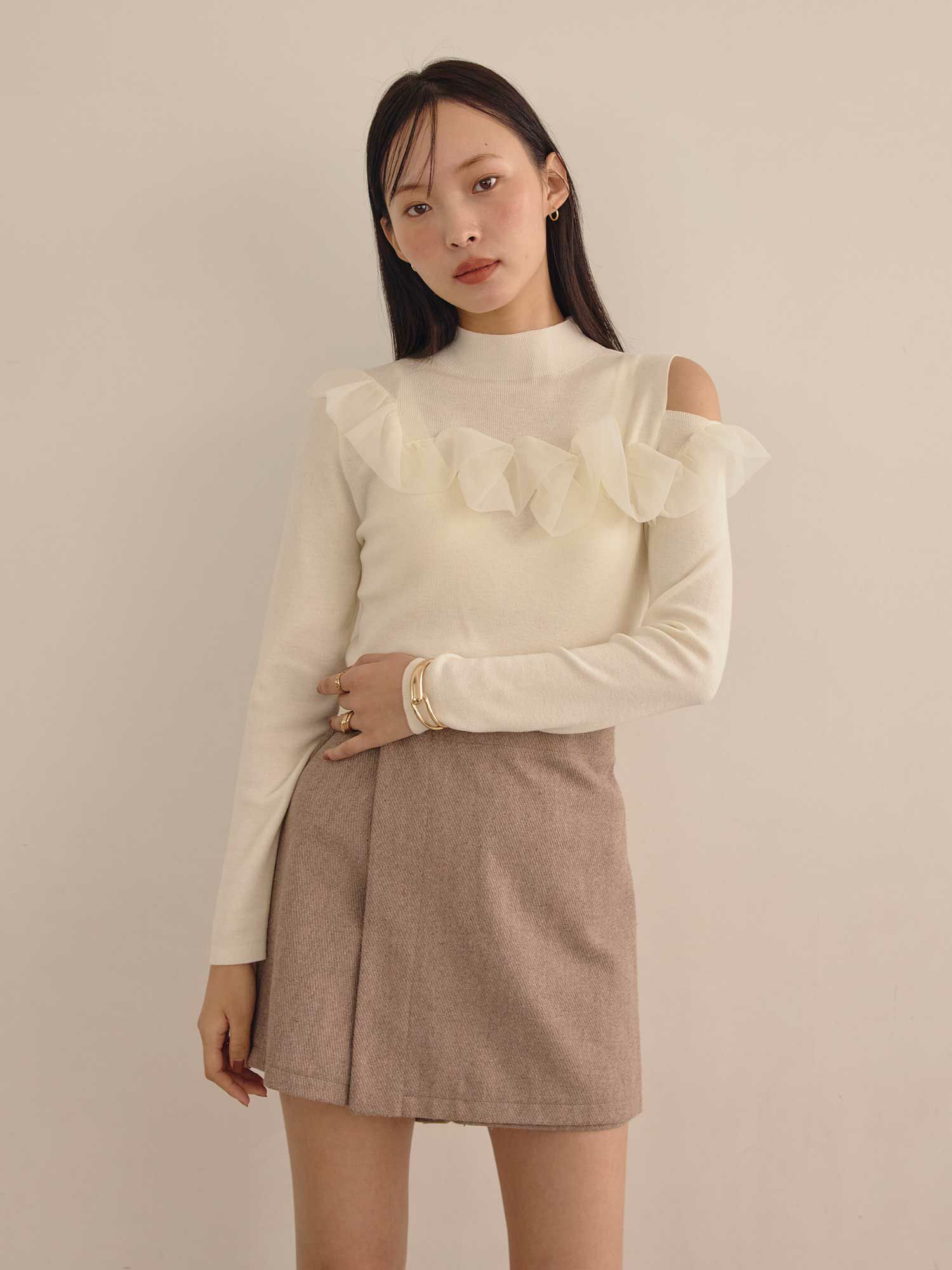 チュールコンビワンショルダーニット