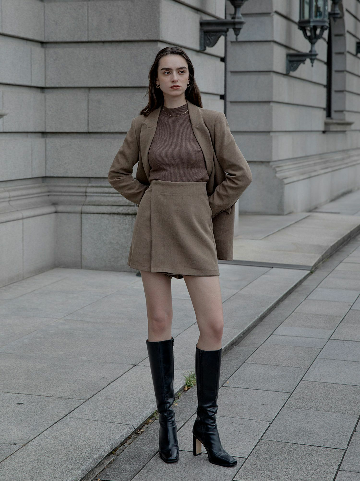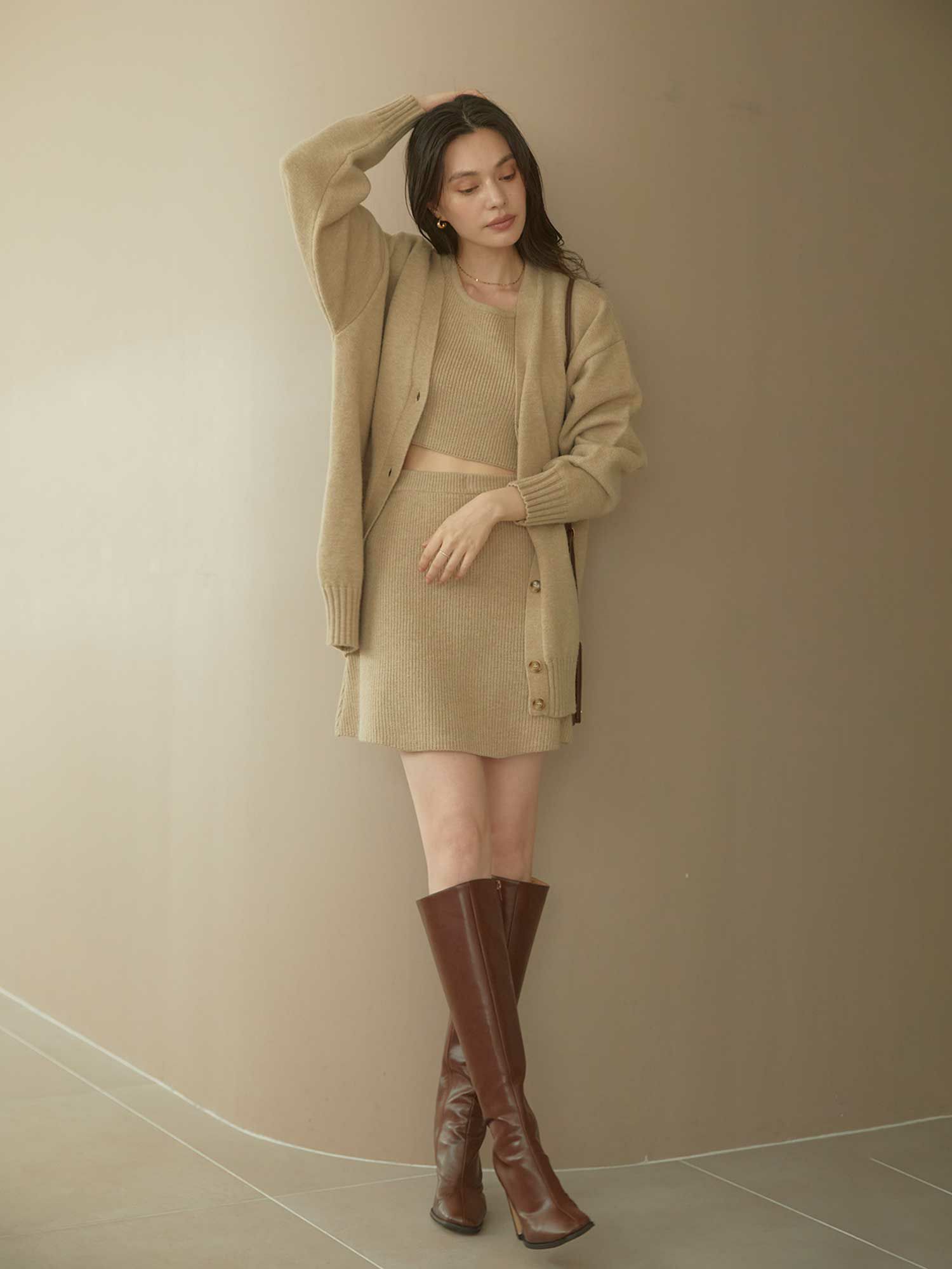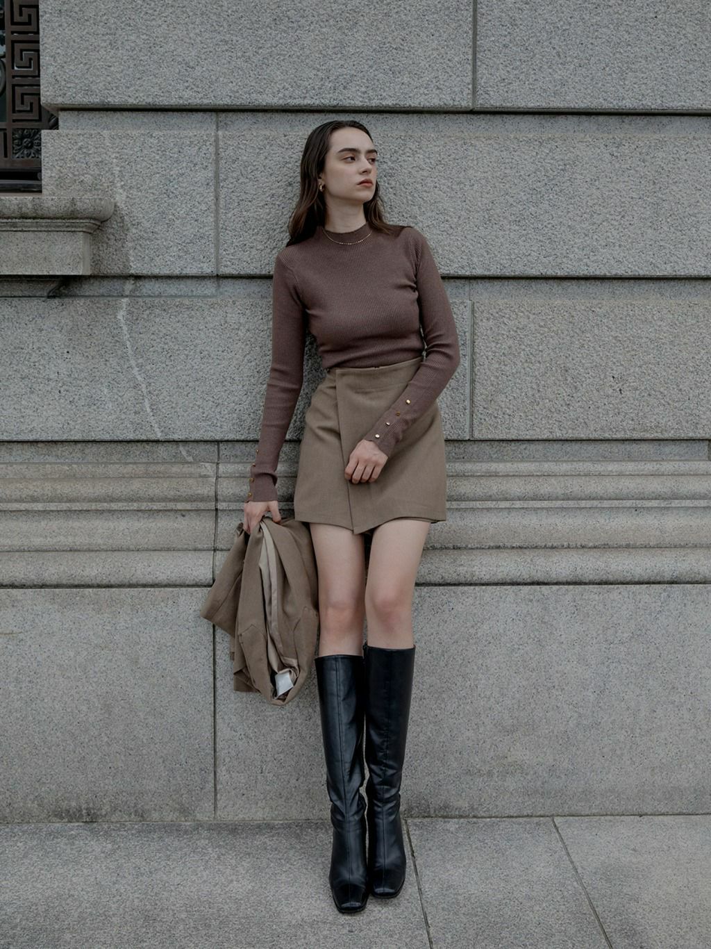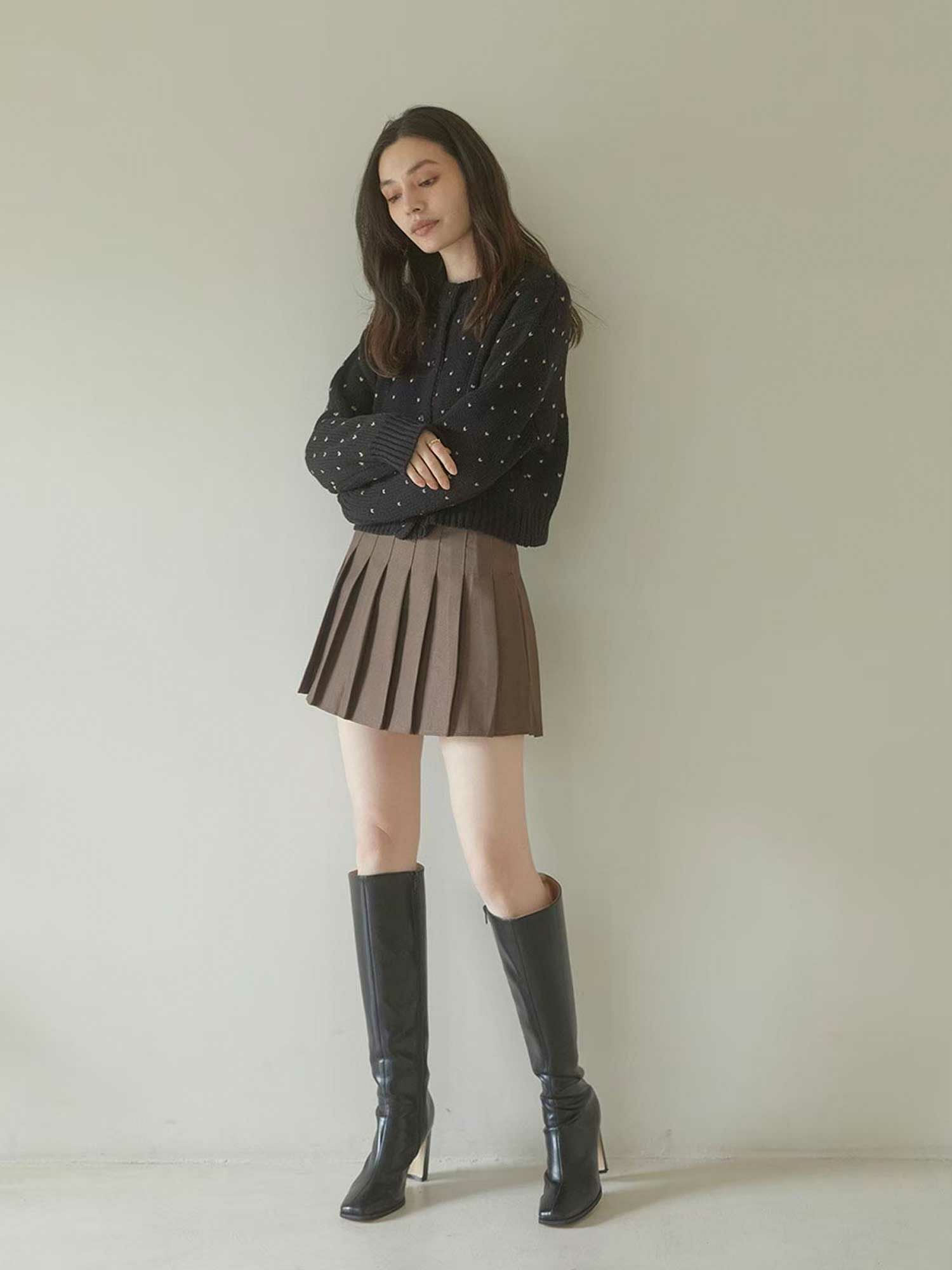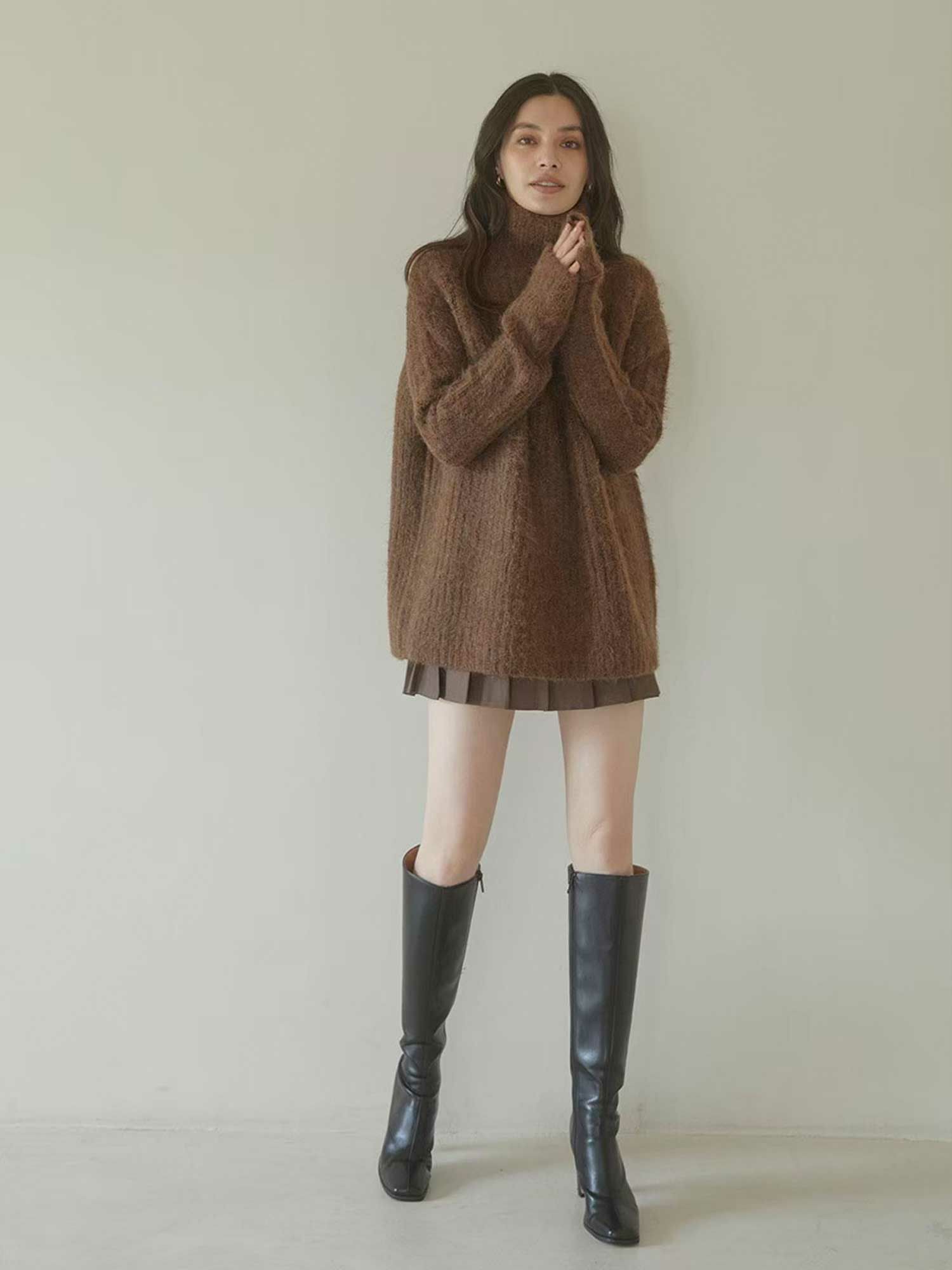 ミニボトムスとの合わせはもちろん、フルレングスパンツを重ねたブーツインスタイルも◎