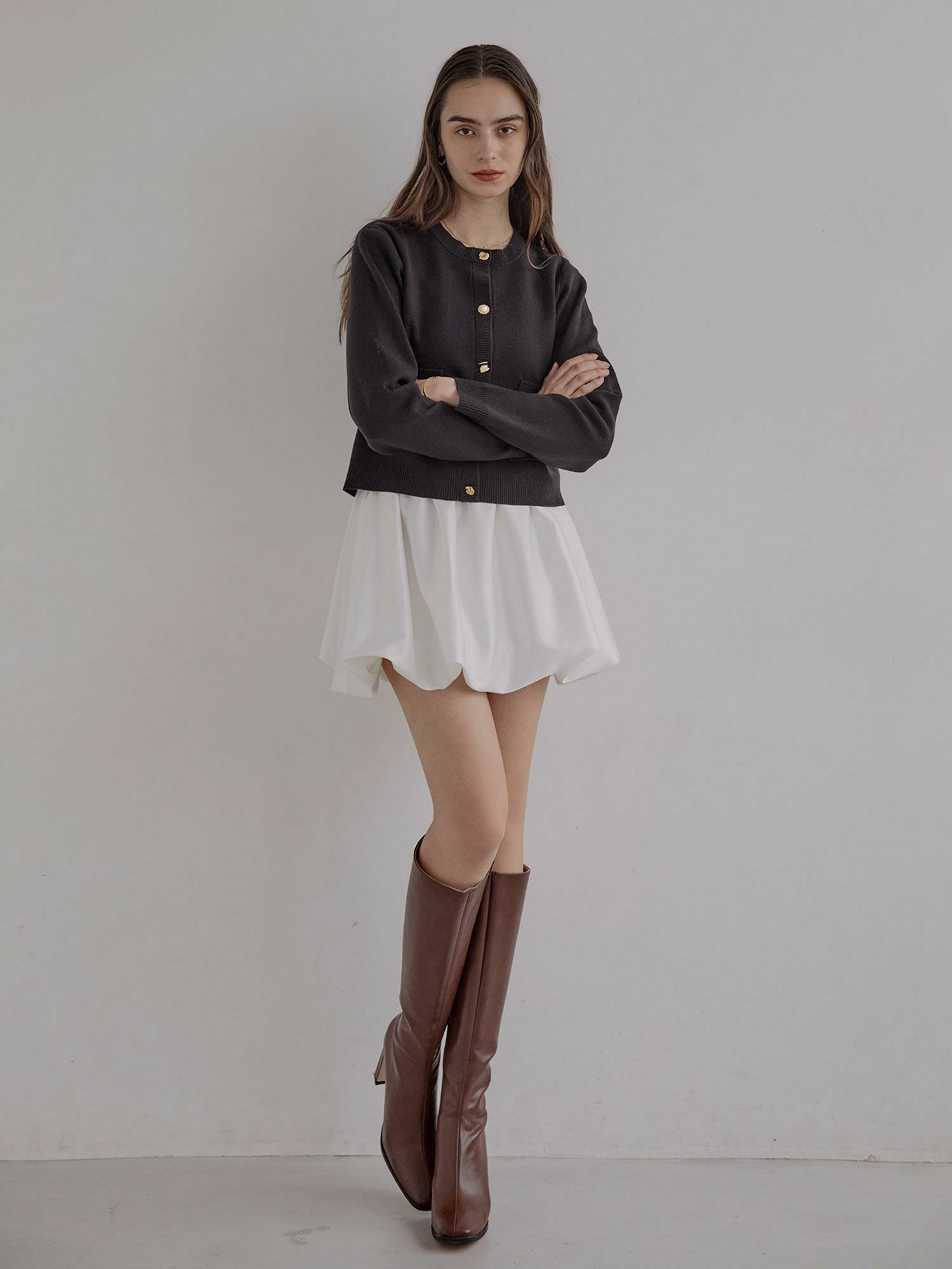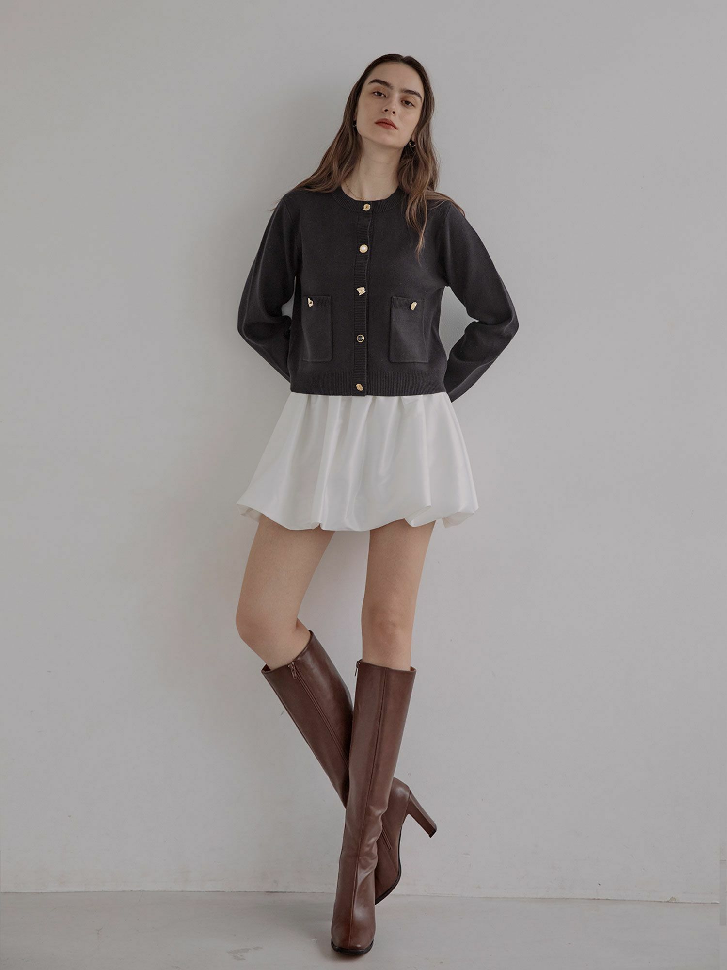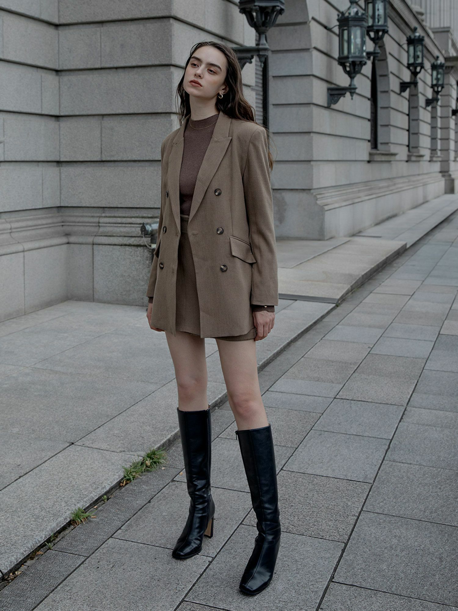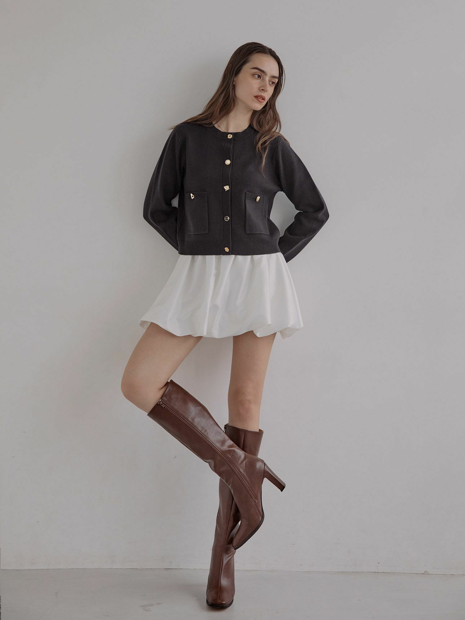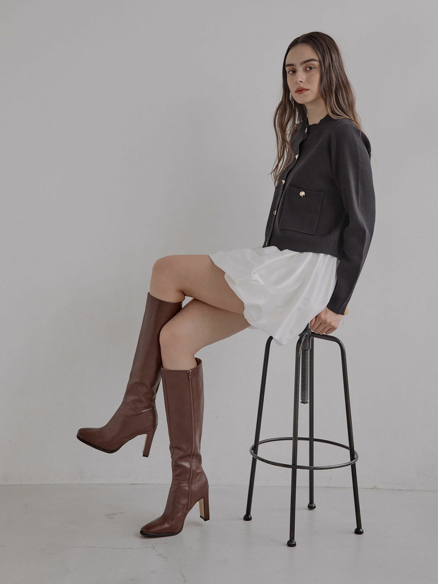 ミニボトムスとの合わせはもちろん、フルレングスパンツを重ねたブーツインスタイルも◎