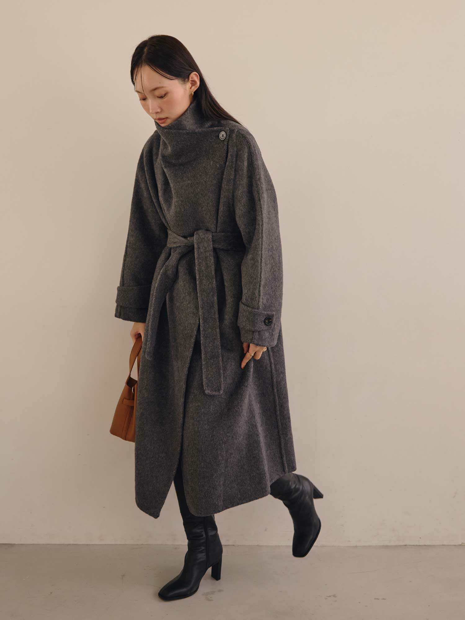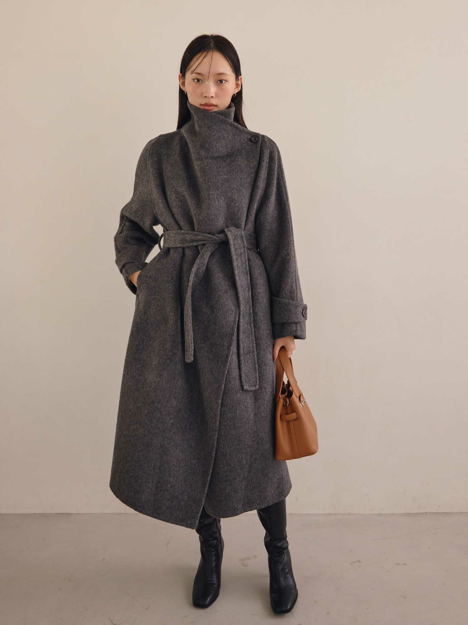 スタンドカラーウールコート¥ |